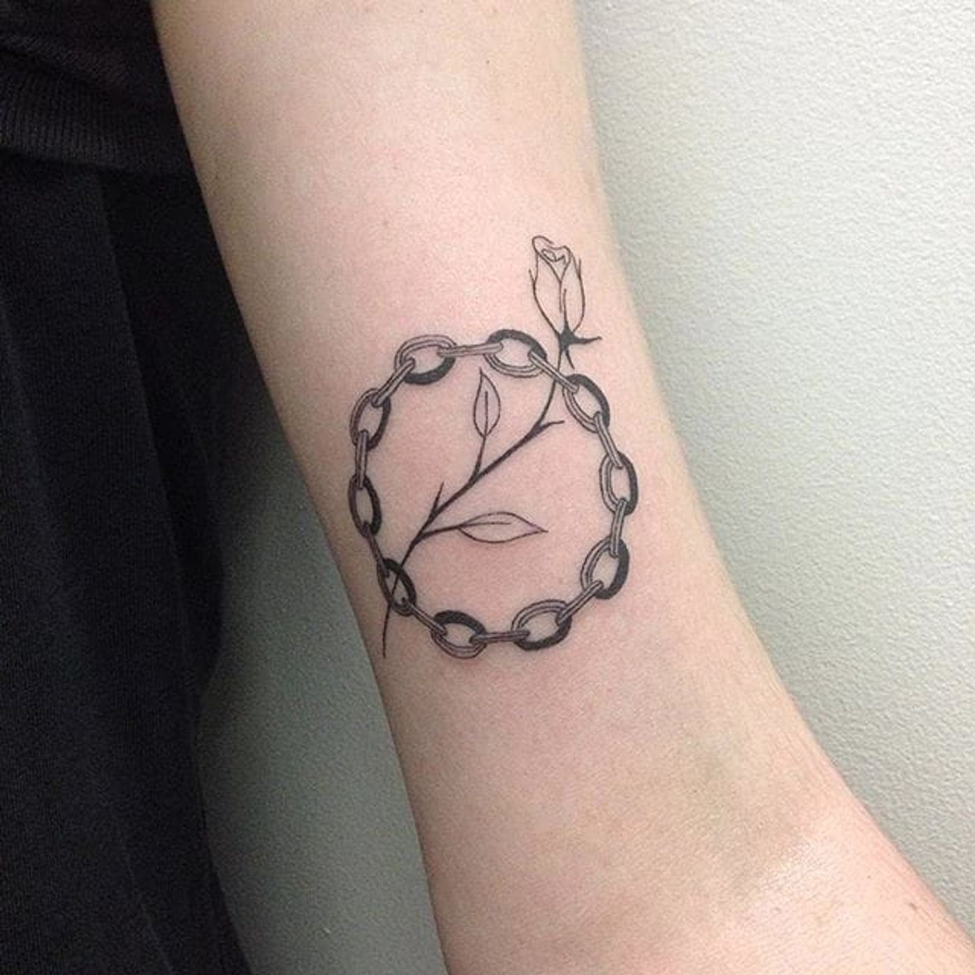 Chain rose tattoo by René O'Donnell-Gibson. #ReneODonnelGibson #rene #linework #folktraditional #chain #rose
