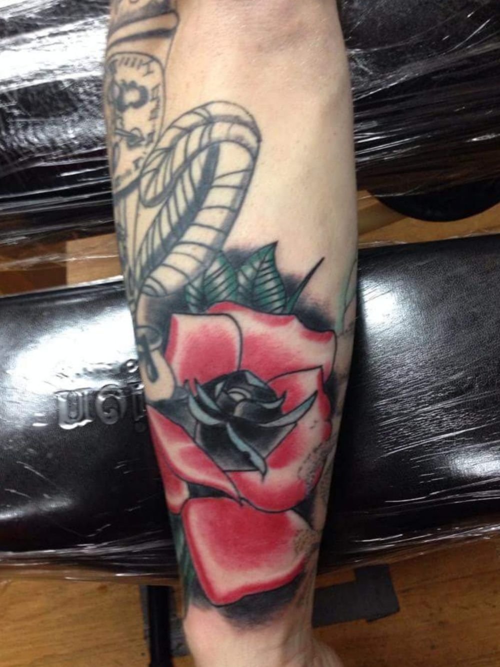 Rose in full bloom by Jeff Thompson at Thor's Hammer and Needle; Poulsbo, WA