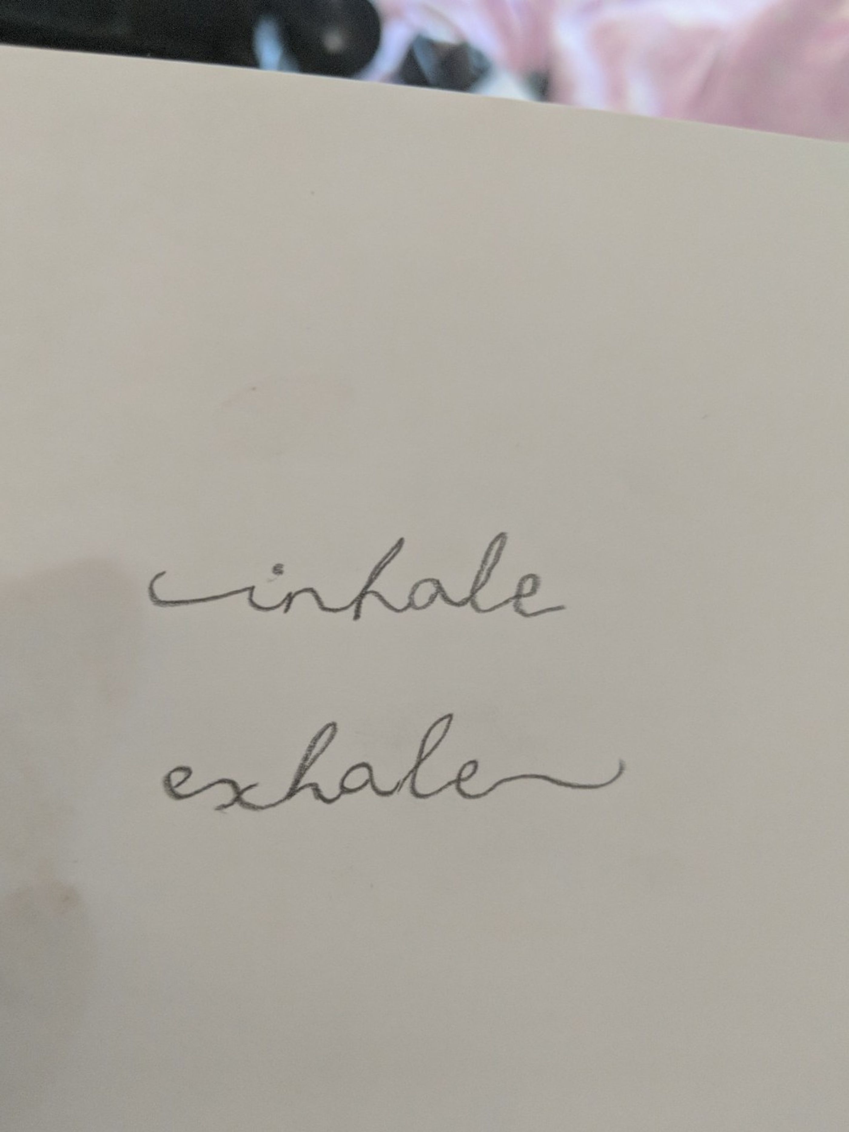 Just wrote this cute little font that says "inhale exhale". I really want to get this on my wrist or my ankle. I think it's super cute and can't wait to get it done.