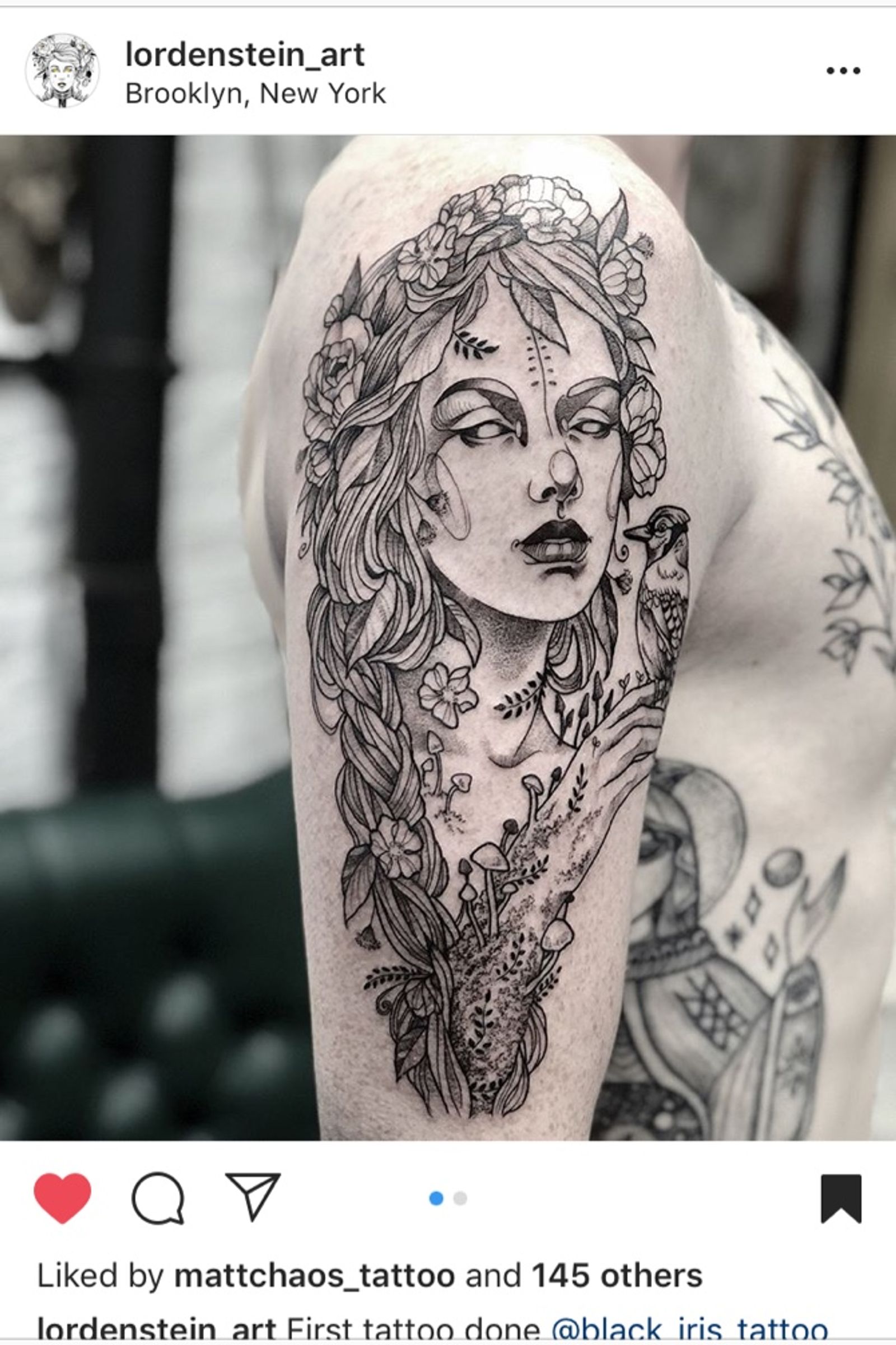 Completed by Maret Brotkrumen (IG: @lordenstein_art). Completed at Black Iris Tattoo in Brooklyn, NY
