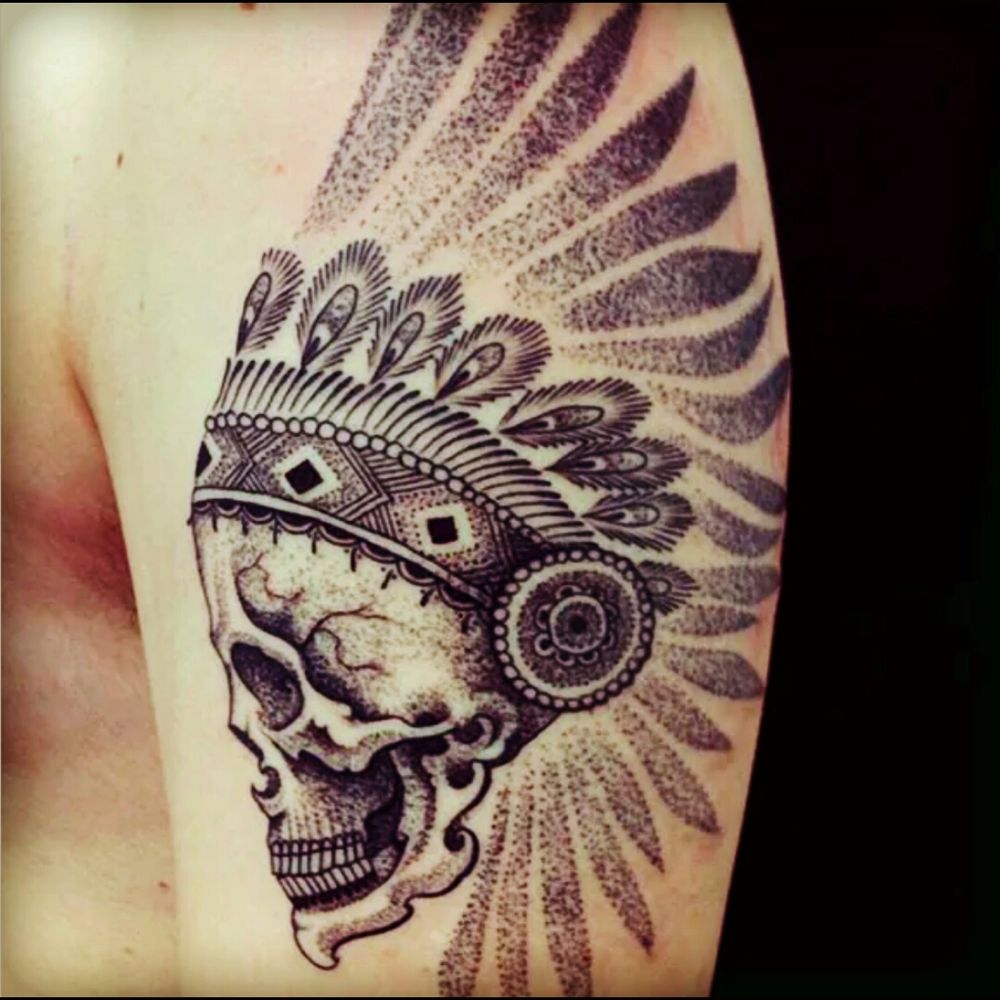 Cool black & grey native Indian headdress skull tattoo #dreamtattoo #mydreamtattoo