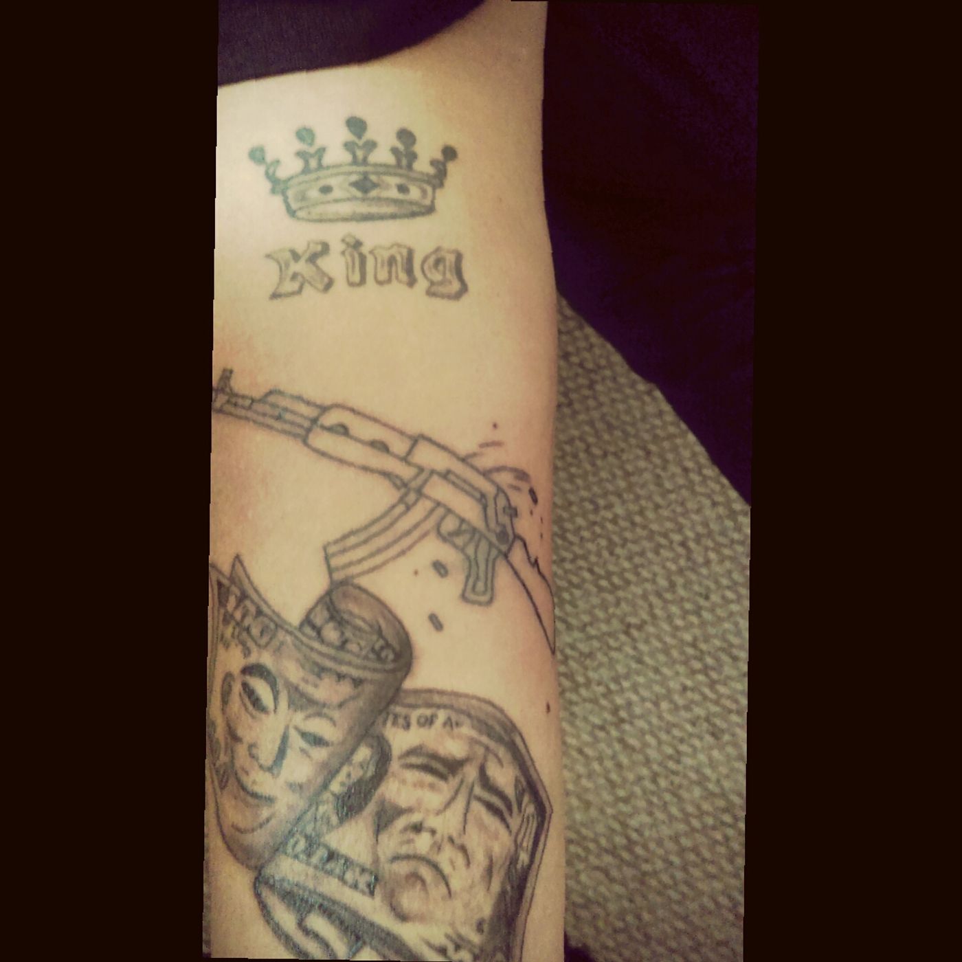 The crown was done in Las Vagus for $200.. The king was done in Regina Canada fore $50 .. the Aka 47 and the laugh now cry later money was done in Saskatoon buy Henry Herman
