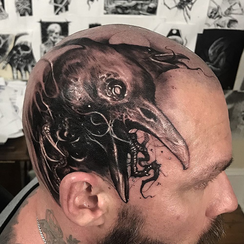 Tattoo by Brandon Herrera #BrandonHerrera #besttattoos #blackandgrey #darkart #bird #raven #illustrative splatter #animal