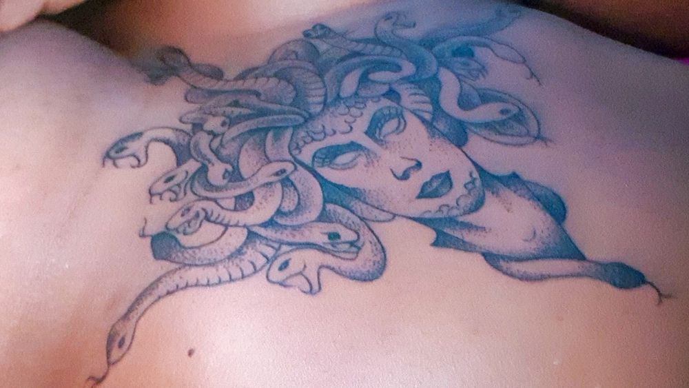 Medusa Sternum Tattoo. Done in Gung Ho Tattoo, King's Heath, Birmingham UK. #medusatattoo #medusa #sternumtattoo #dotwork #linework #fineline #snakes #greekmythology #sternum #greek #mythology #MythologyTattoos #mythologicalcreature #uk 🐍🐍🐍🐍🐍🐍🐍🐍🐍🐍🐍🐍🐍🐍🐍🐍🐍