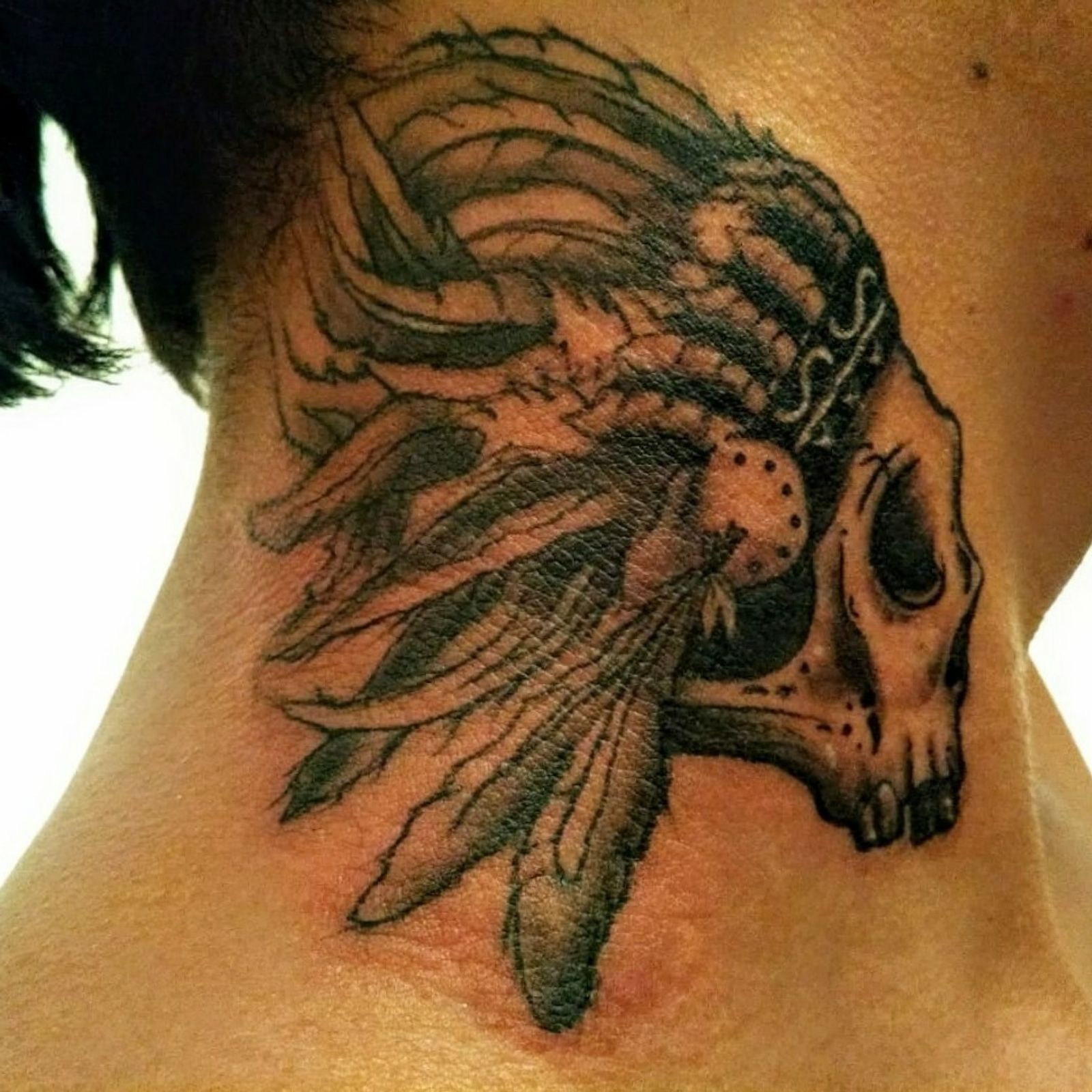 #skulltattoo #blackandgray #indiantattoo #plumas #tatuaje #tattooenelcuello