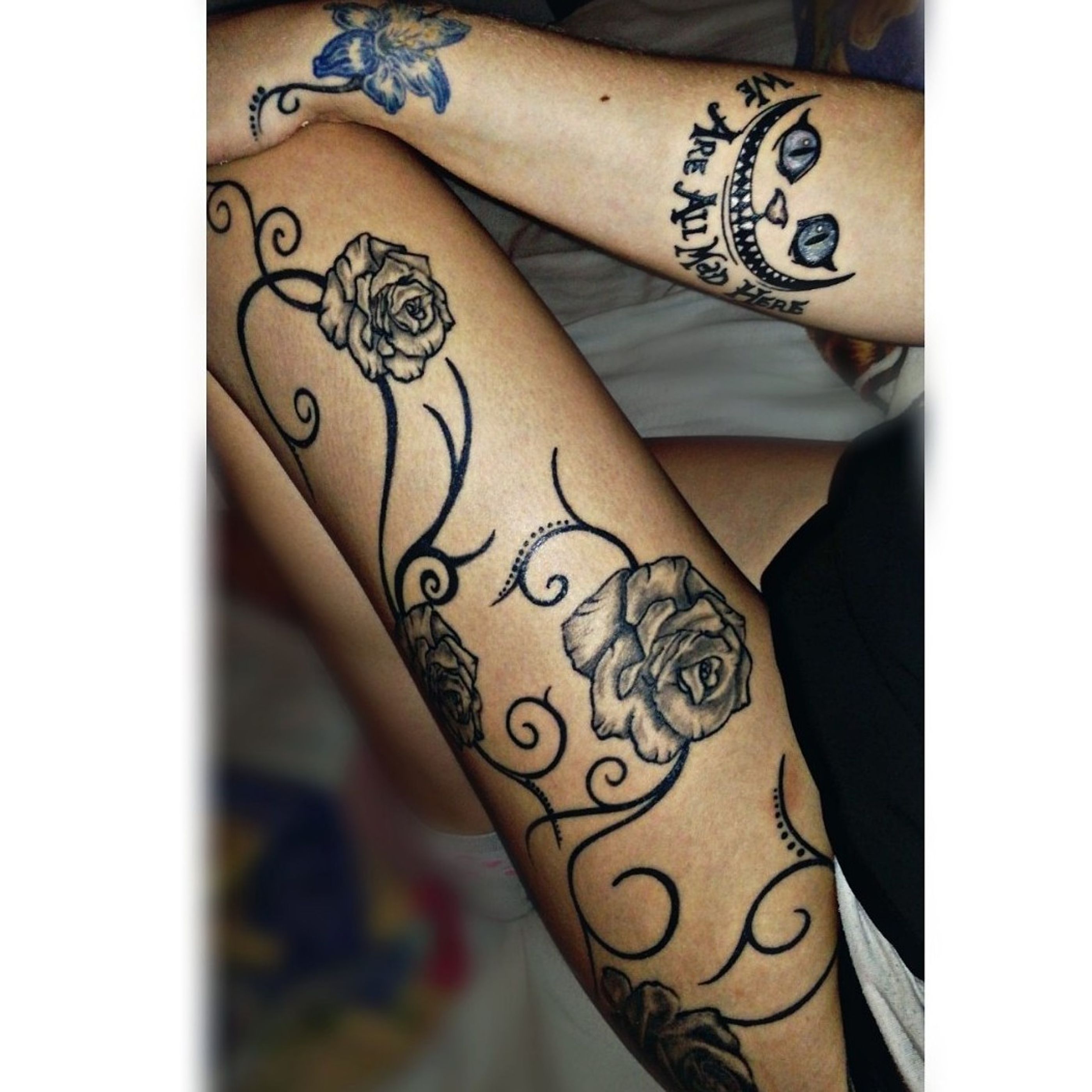 #rosestattoo #AliceinWonderlandtattoo #tattoart #flowertattoo #cattattoo #roses #blackrosetattoo #flowers #blueeyes #blackartwork #blacktattoos #weareallmadhere #cheshirecattattoo