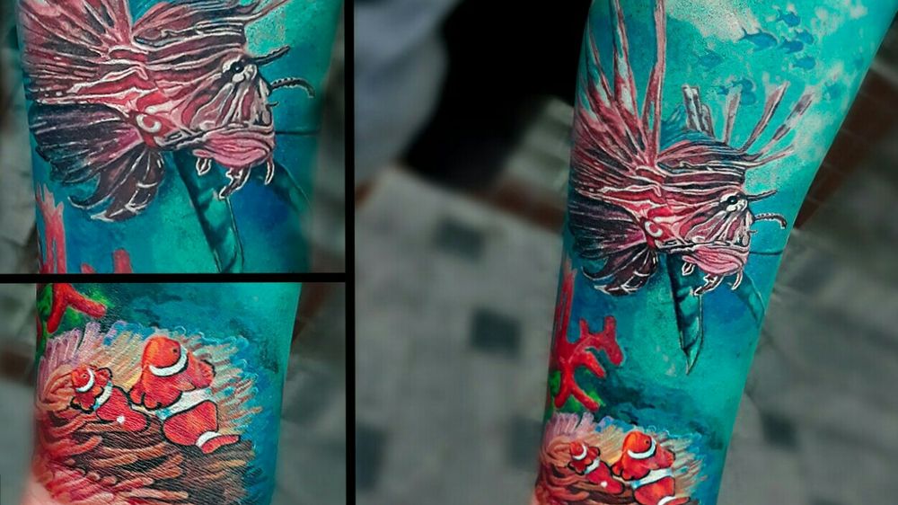 Fundo do mar por Luis Felipe #deepsea #fishtattoo #seatattoo #clownfish #realism #realistic #colortattoo #colorrealism