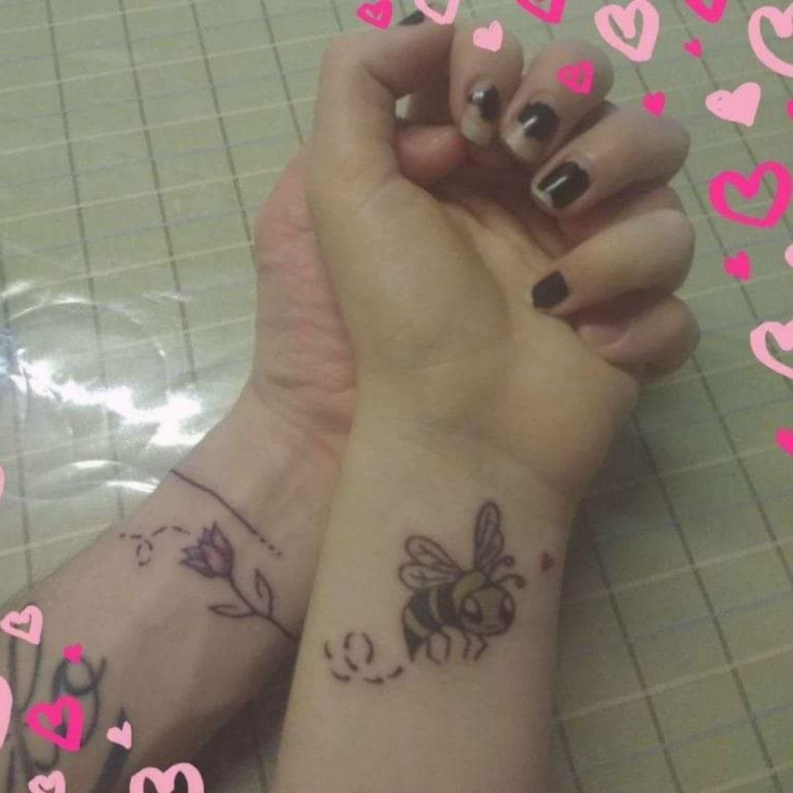 Love u😍🖤 #bee #flower #love #matchingtattoos #handpoke