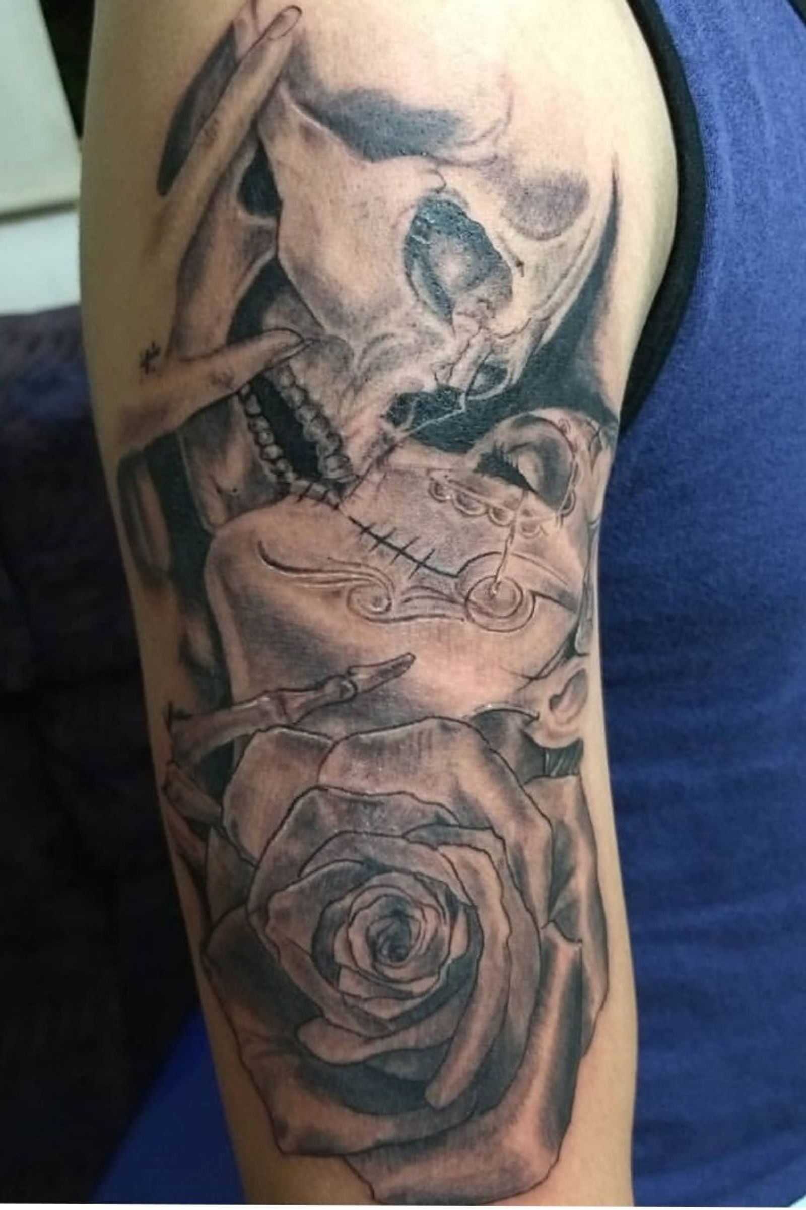 #besodelamuerte #death #catrinatattoo #rosestattoo #kiss #death #deathkiss