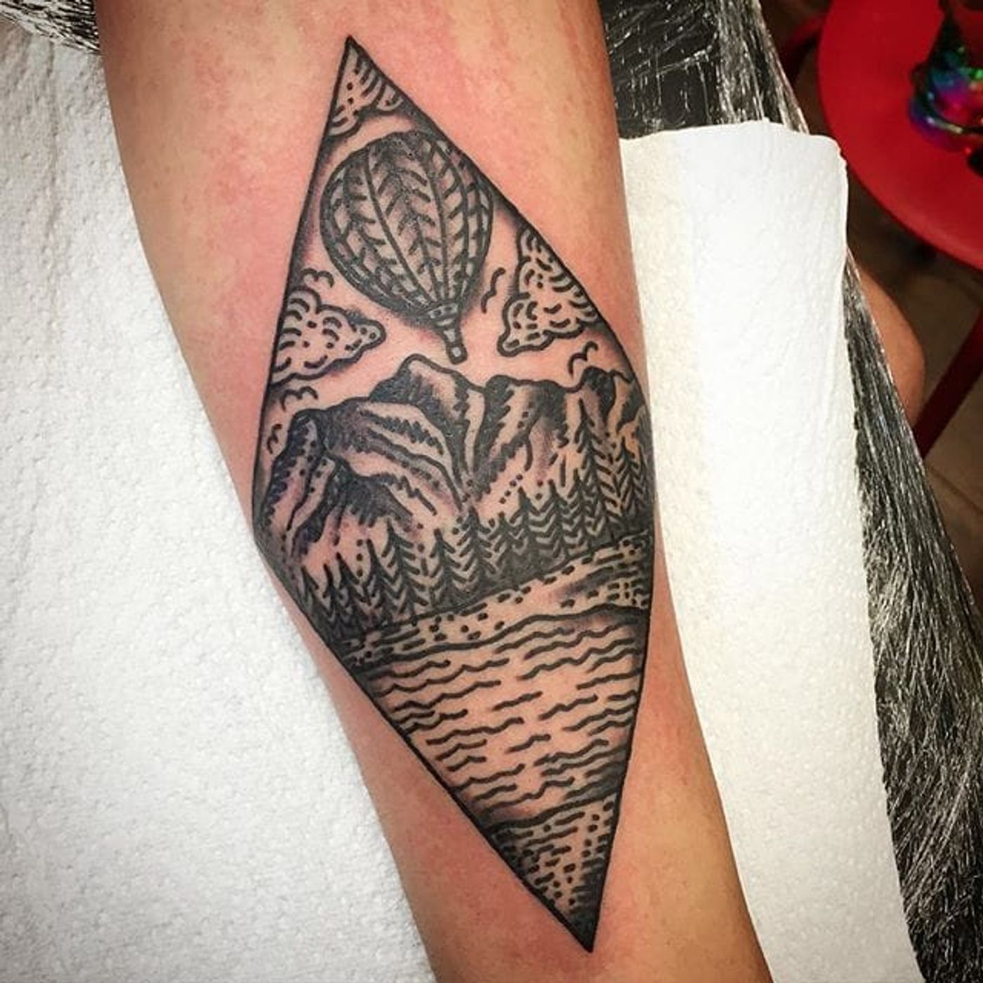 The Alps and the ballon, by Hannah Von Farren #HannahVonFarren #AlpsTattoos #mountains #mountaintattoo