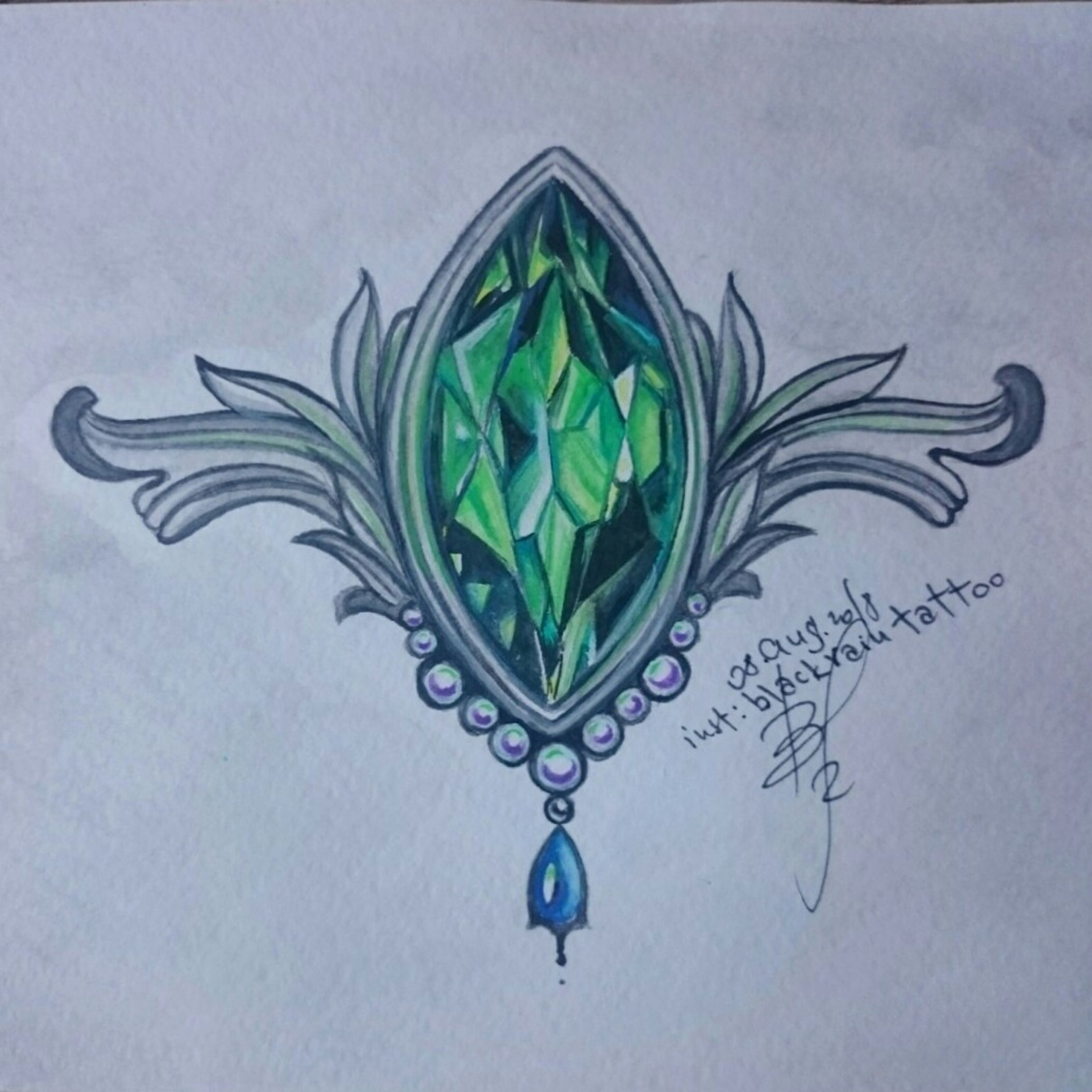 The emerald stone #underbust #stonetattoo #emerald #freedesign #tattoodesigner #tattoodesigns
