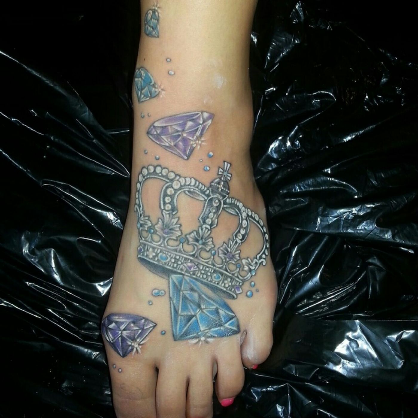 Throwback to my fresh crown and diamonds by #chip 😍😍 #royalty #whiterocktattoo #mike #foot #colour #contrast