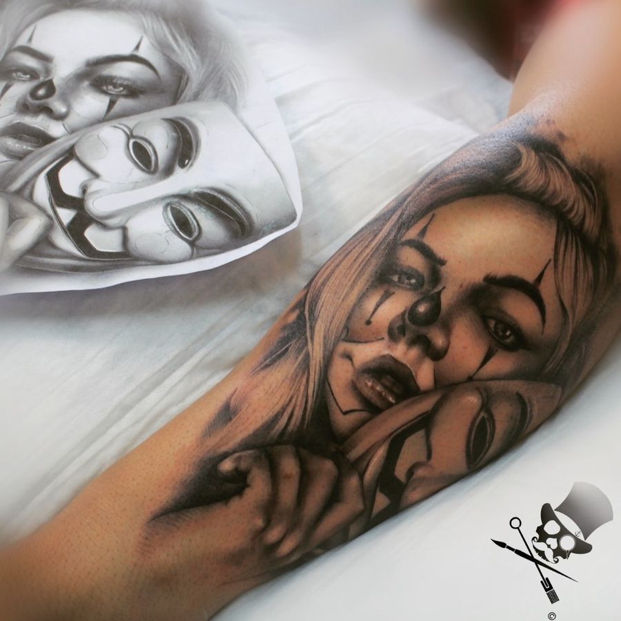 #tattoo #tattooist #tattooer #tattoos #tattooartist #truthbetold #tattoostudio #menwithtattoos #clown #clownface #girlfacetattoo #anonymous #vforvendetta #blackandgreytattoo #johannesburg #tattooart #art