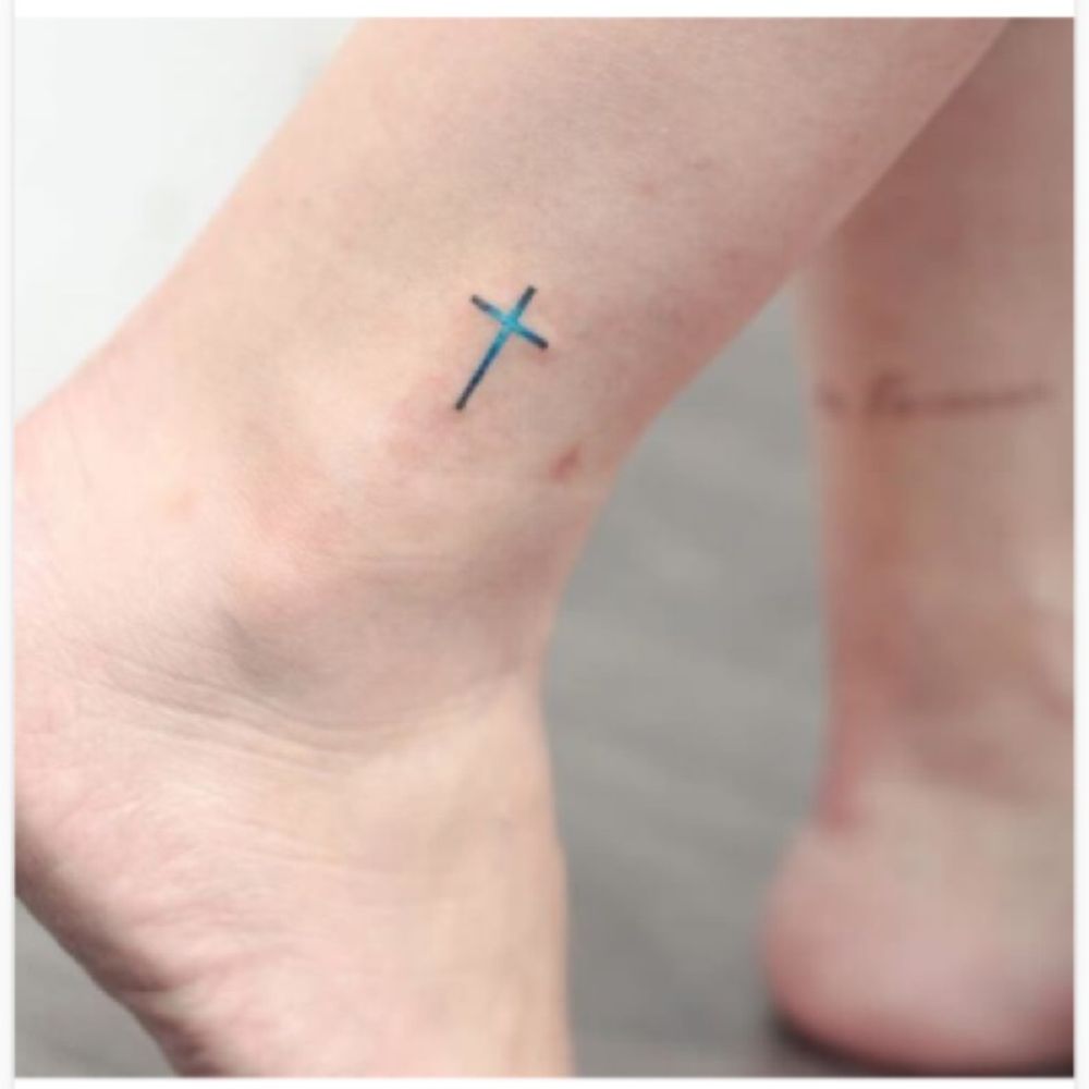 Subtle tattoo by Anzo Choi #tattoo #tattoodo #blue #AnzoChoi #cross