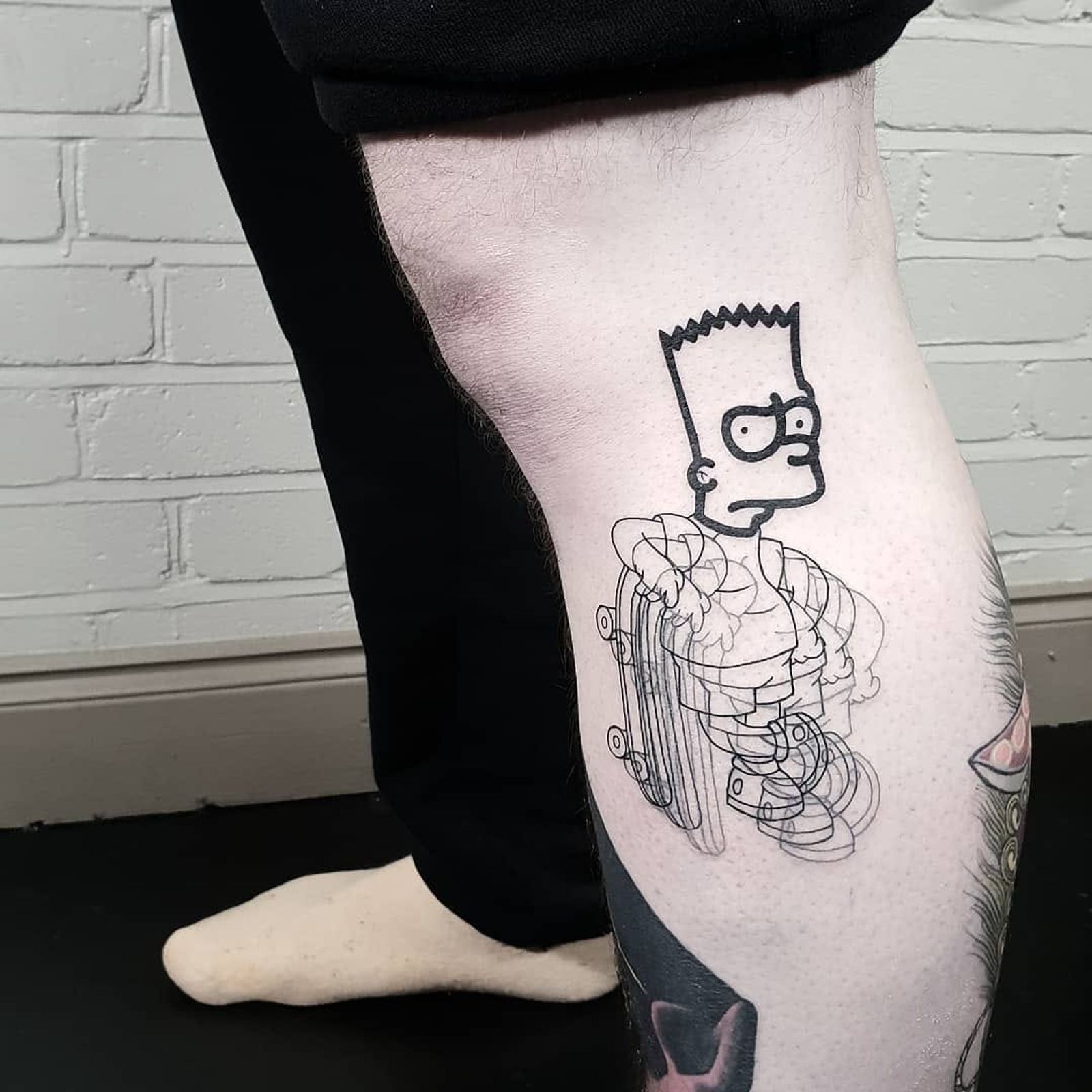 Tattoo by Matteo Nangeroni #MatteoNangeroni #thesimpsons #Simpsons #cartoon #newschool #tvshow #tvshowtattoo #linework #fineline #3D #graphic #blackwork #skateboard #bart #bartsimpson