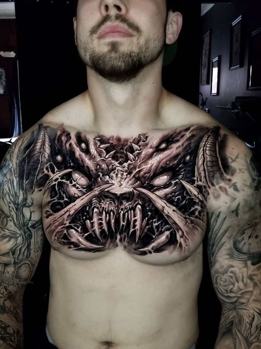Work in progress. Next traps and stomach. Booking end of September to end of year. Email for appointments⬇️ autopsy.tattoo.studio@gmail.com . . Done with the following @cheyenne_tattooequipment products: Machine: #solnova Power supply: #PU2 Needles config: 9 power, 13 & 23 soft edge magnum . . Ink: #instablackink by @silverbackink . . #toxycxlr #austin #texas #freehand #freehandtattoo #texastattoos #austintattoo #austintattoos #eviltattoo #CheyenneTattooEquipment #CheyenneSafetyCartidges #CheyenneFamilly #CheyenneArtist #MadeForArtists #CraftCartidges #silverbackink #darkart #darktattoo #biomech #biomechtattoo #biorganictattoo #chesttattoo #demon #demontattoo