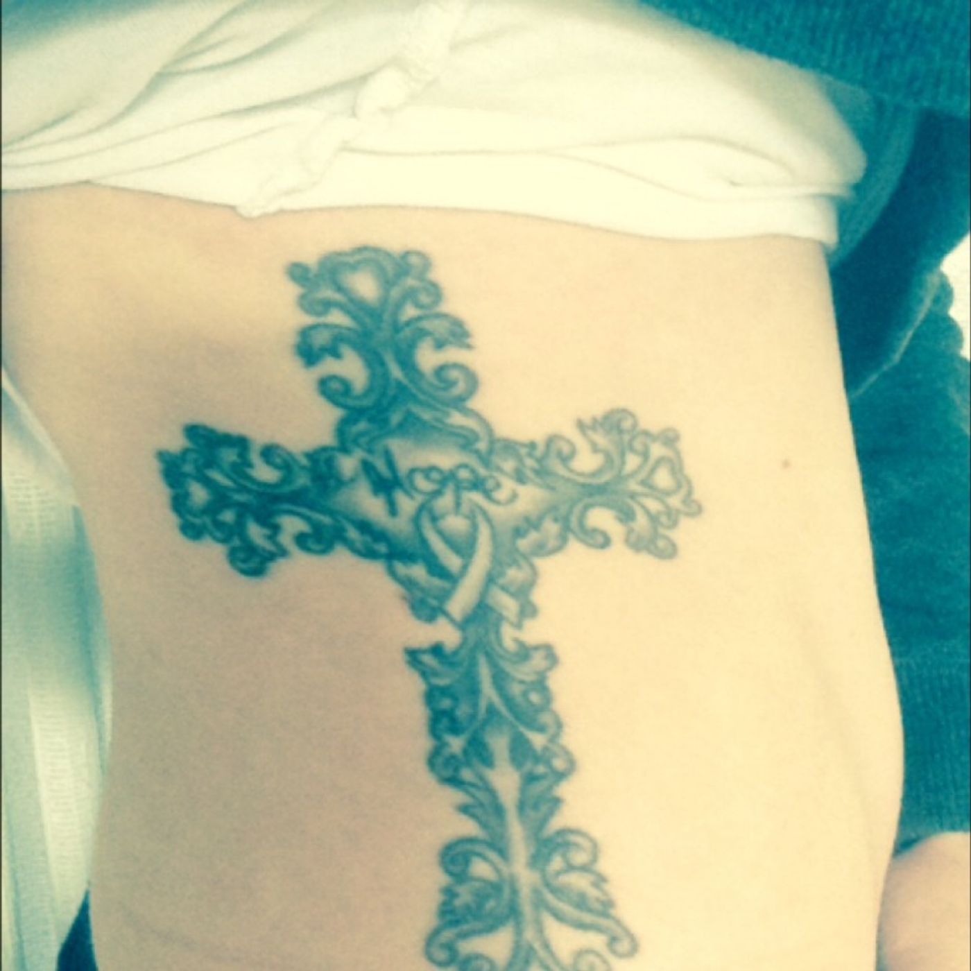 Tattoo in honour of all thise affected by breast cancer, in particular, my mum #breastcancer #hope #honour #cross #pinkribbon