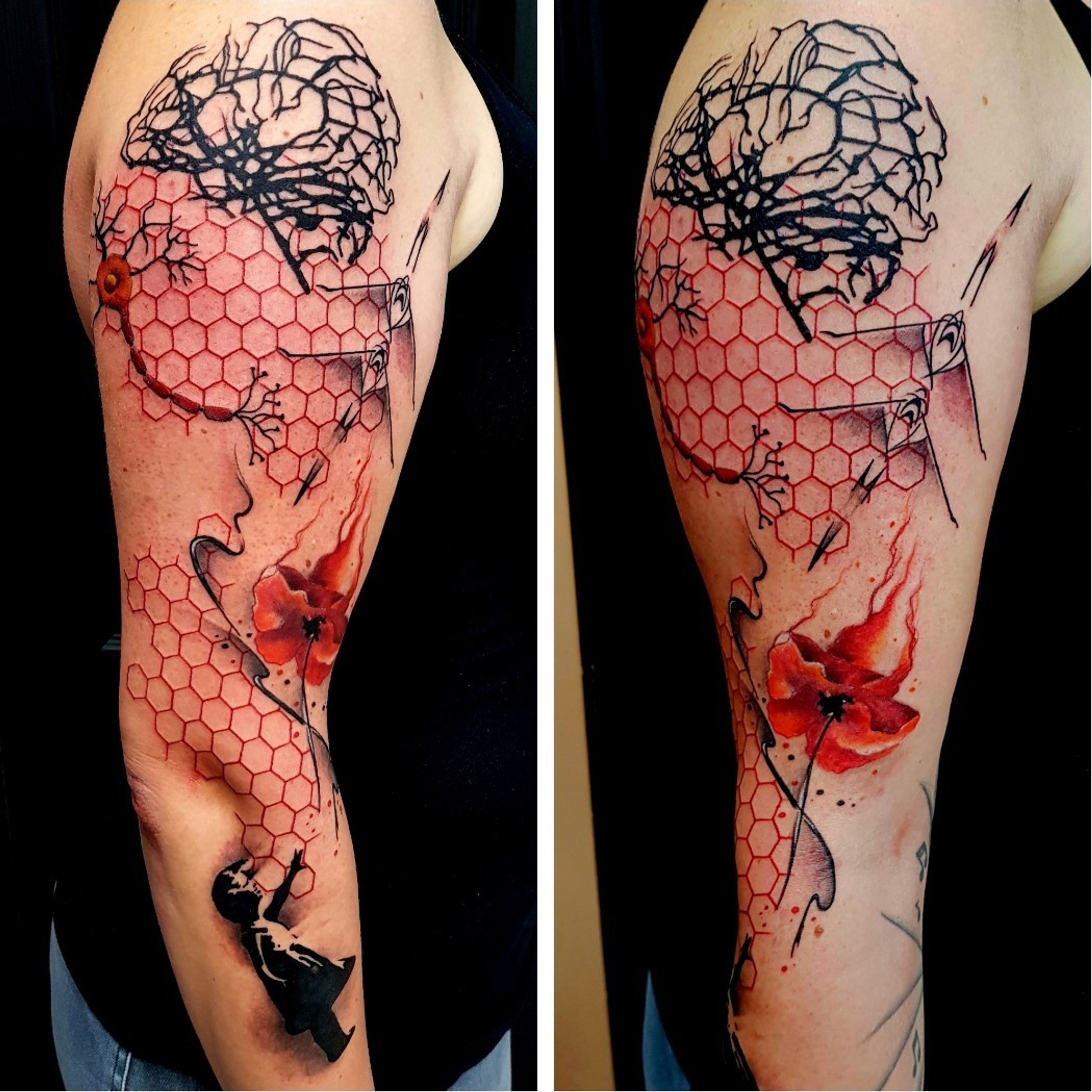 Trash polka piece today..#brain #braintattoo #neuroscience #rowing #poppytattoo