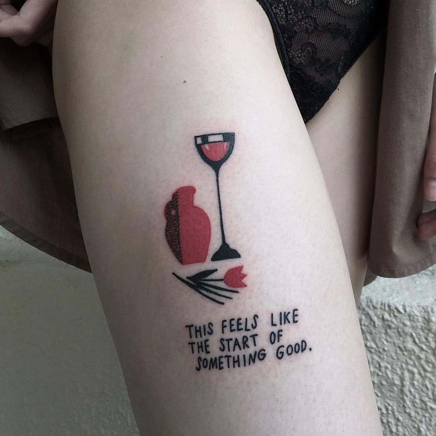 Tattoo by Anrei Ylita aka ylitenzo #AndreiYlita #ylitenzo #favoritetattoos #favorite #best #cool #wine #wineglass #text #quote #wino #glass #flower #floral #tulip #minimal