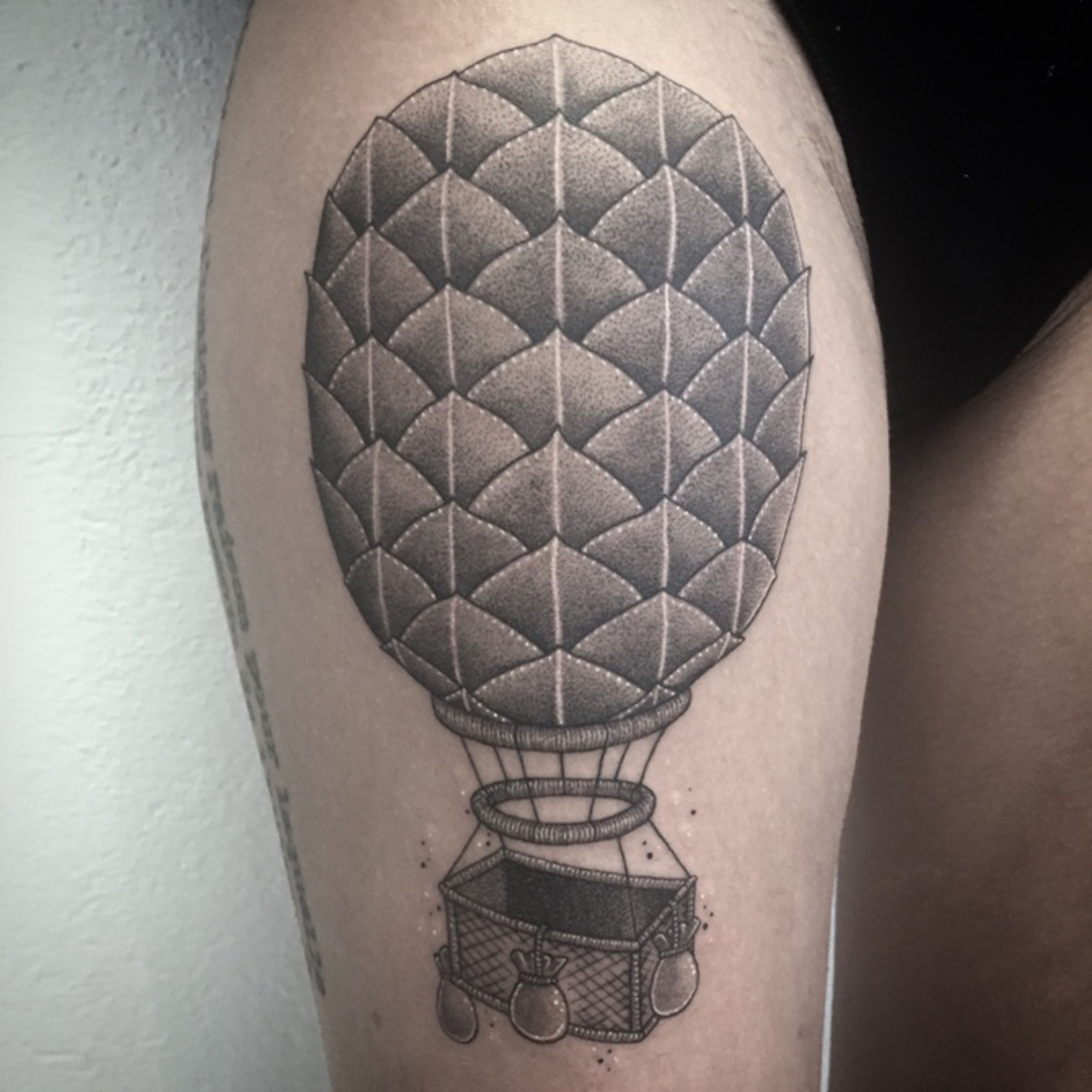 #hotairballoontattoo #hotairballoon #montgolfière #montgolfieretattoo #pineapple #pineappletattoo #pineapplehotairballon #ananas #ananastattoo #montgolfièreananas #dots #dotwork #dotworktattoo #stippletattoo #petitspoints #lespetitspointsdefanny #tattoolausanne #blackandgreytattoo #blackandwhitetattoo #thightattoo