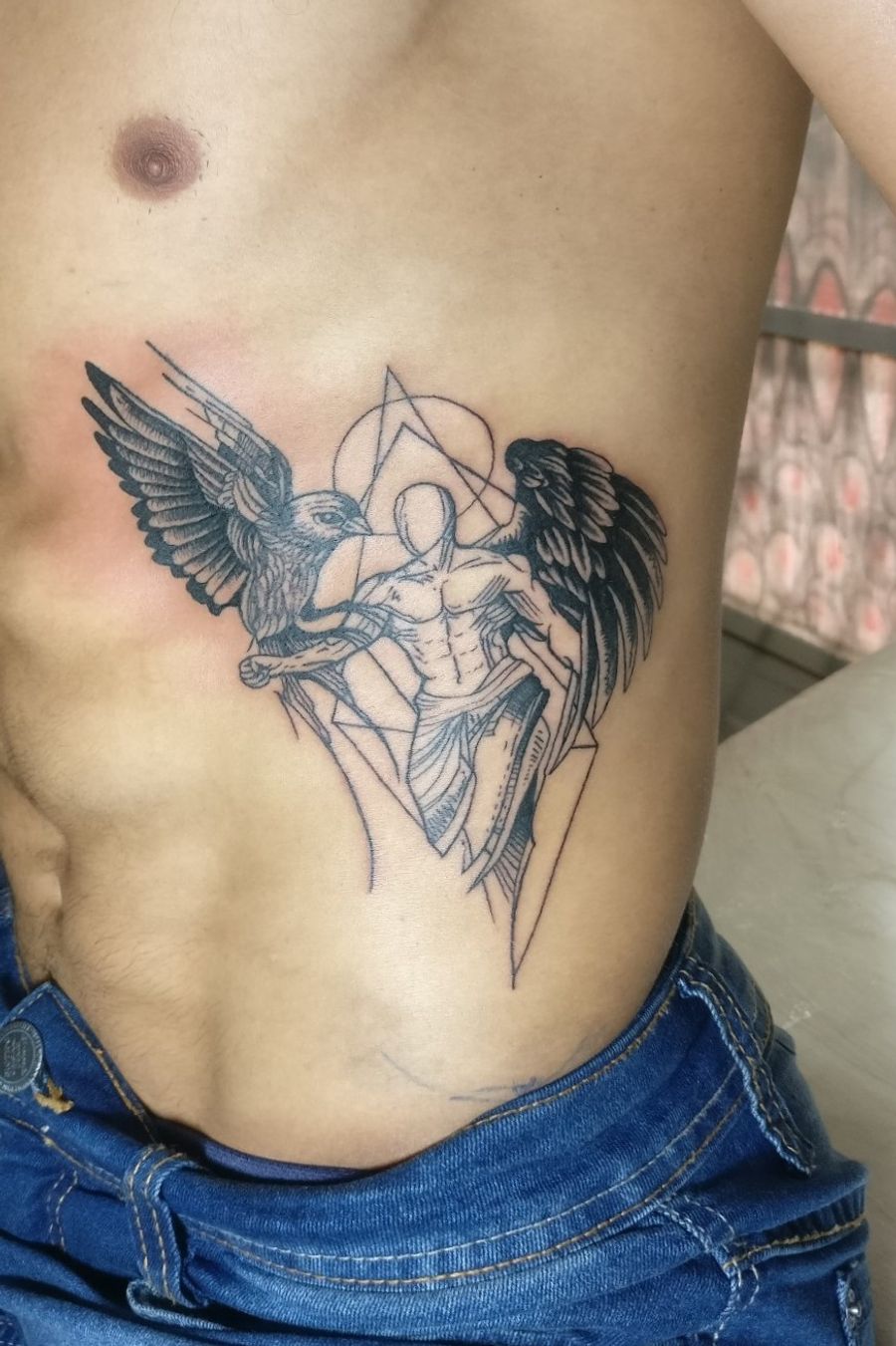 Anjo com pássaro e figuras geométricas para a estreia do @jvitork8 ... Valeu a oportunidade, nós! (desenho trazido pelo cliente)