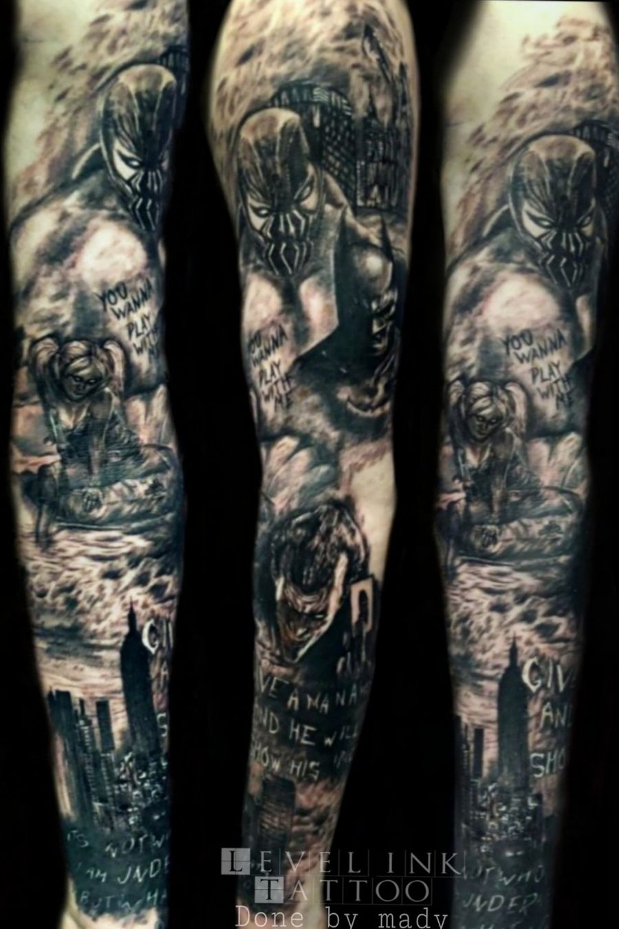 Batman themed full sleeve tattoos