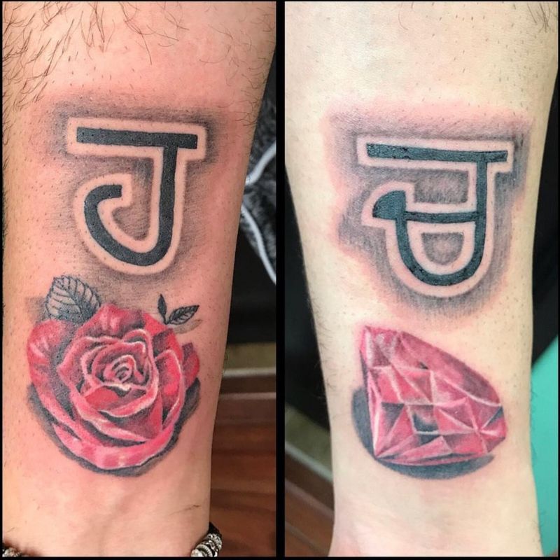 #punjabi #initials #wrist #diamond #diamondtattoo #wristtattoo #hand #rose #rosetattoo #california #corona #punjabifont #fonttattoo
