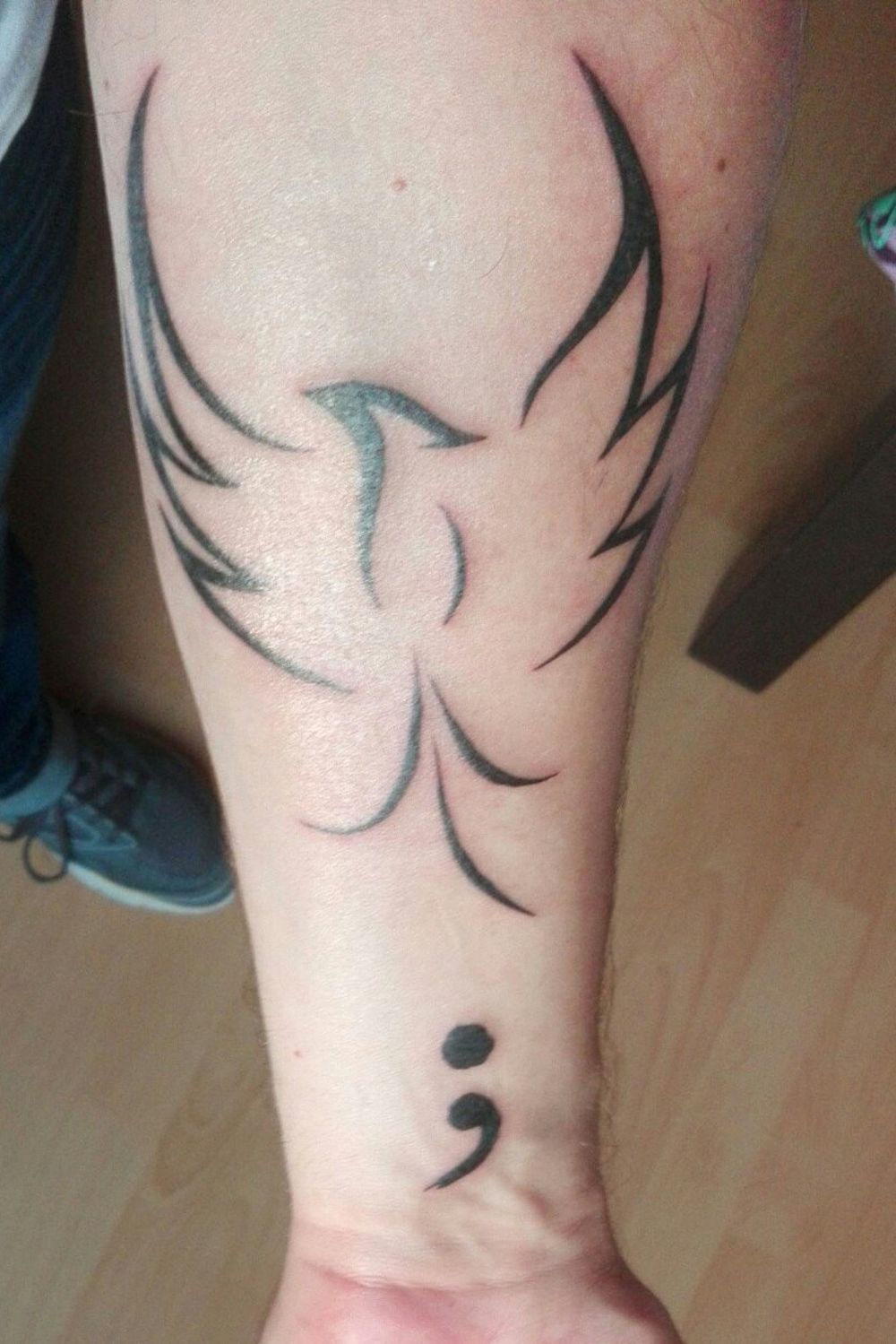 Done 08.09.2016 @ Trust and Ink, Verden by Dorni. Exactly as I wanted it to look ❤️ #phoenixtattoo #phoenix #SemicolonProject #semicolontattoo #SemiColon #Black