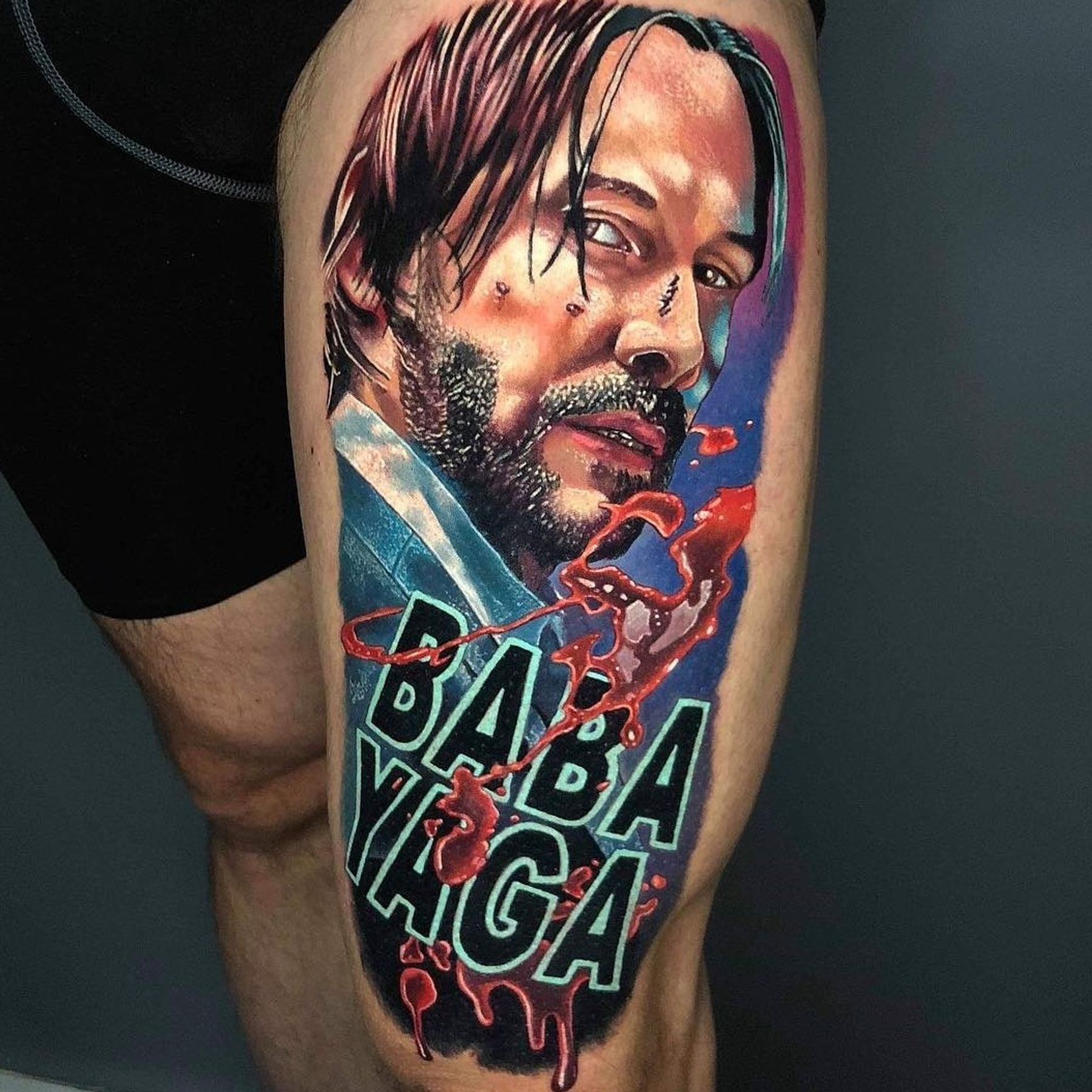 2 days back to back on this #JohnWick #realistic #realistictattoo #colourtattoo