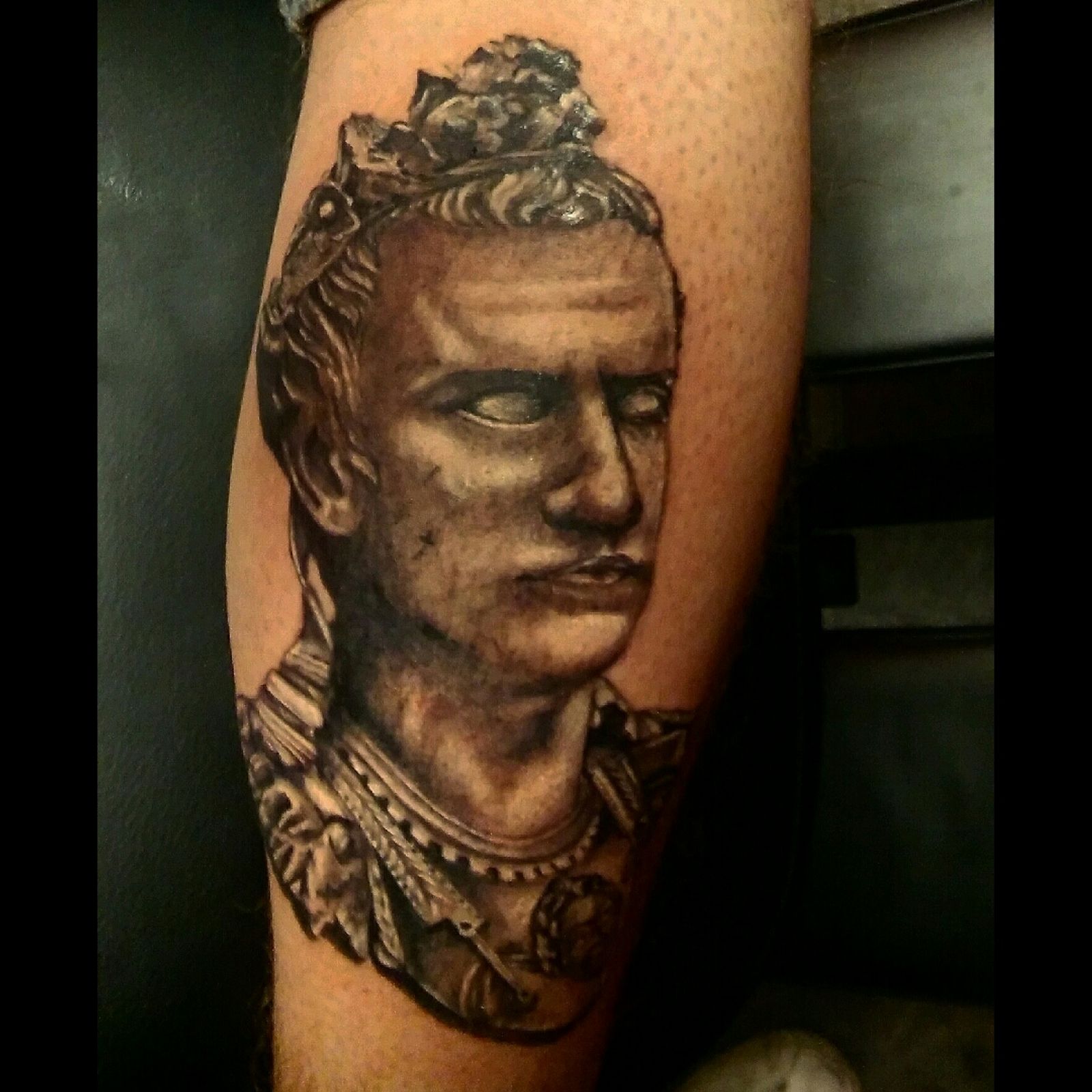 #blackandgrey #Caligula #statue #portrait #photorealism #tattoosbyfisch #dreamtattoo