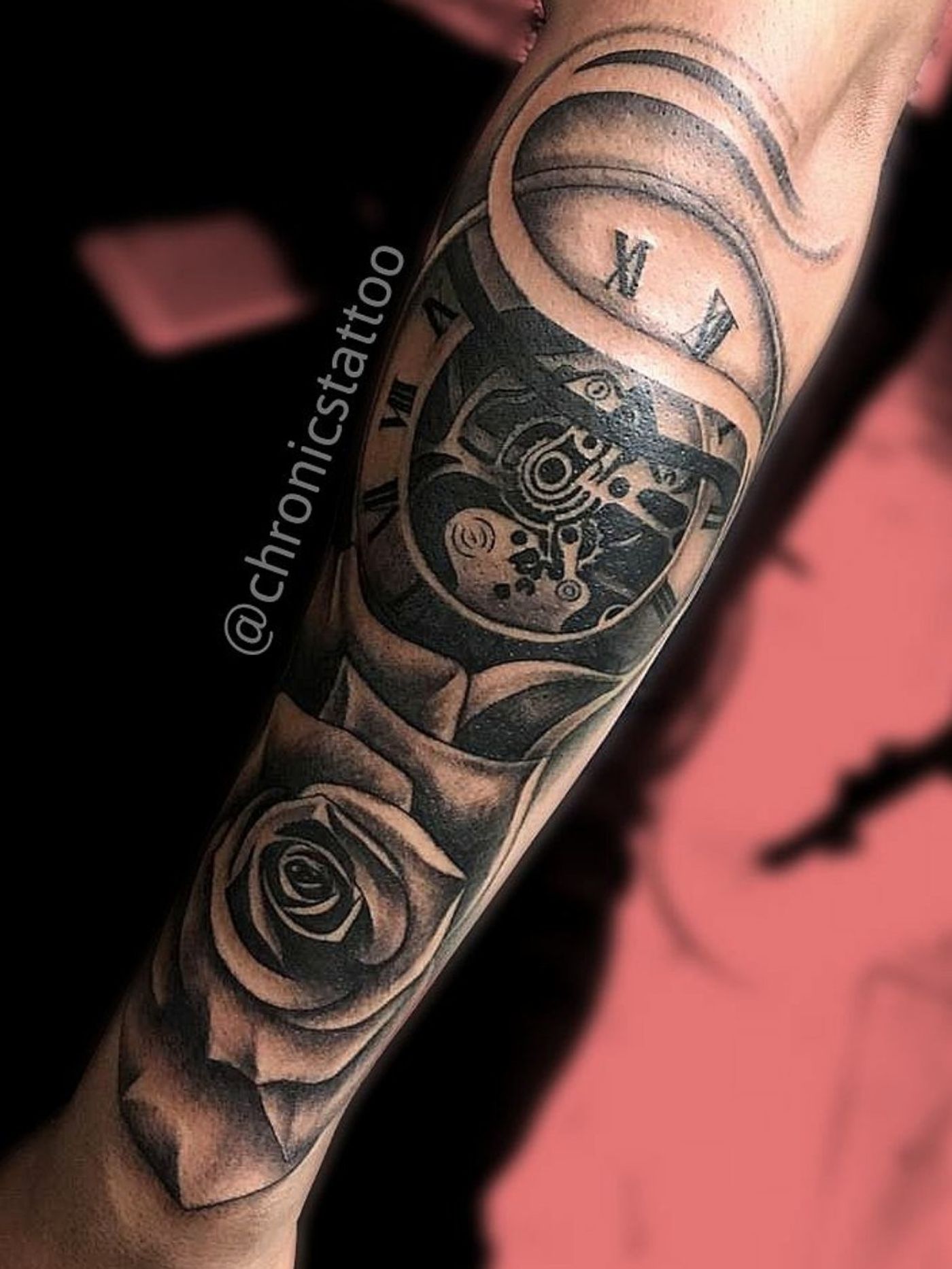 Tatuaje de Reloj y Rosa en el antebrazo ❤