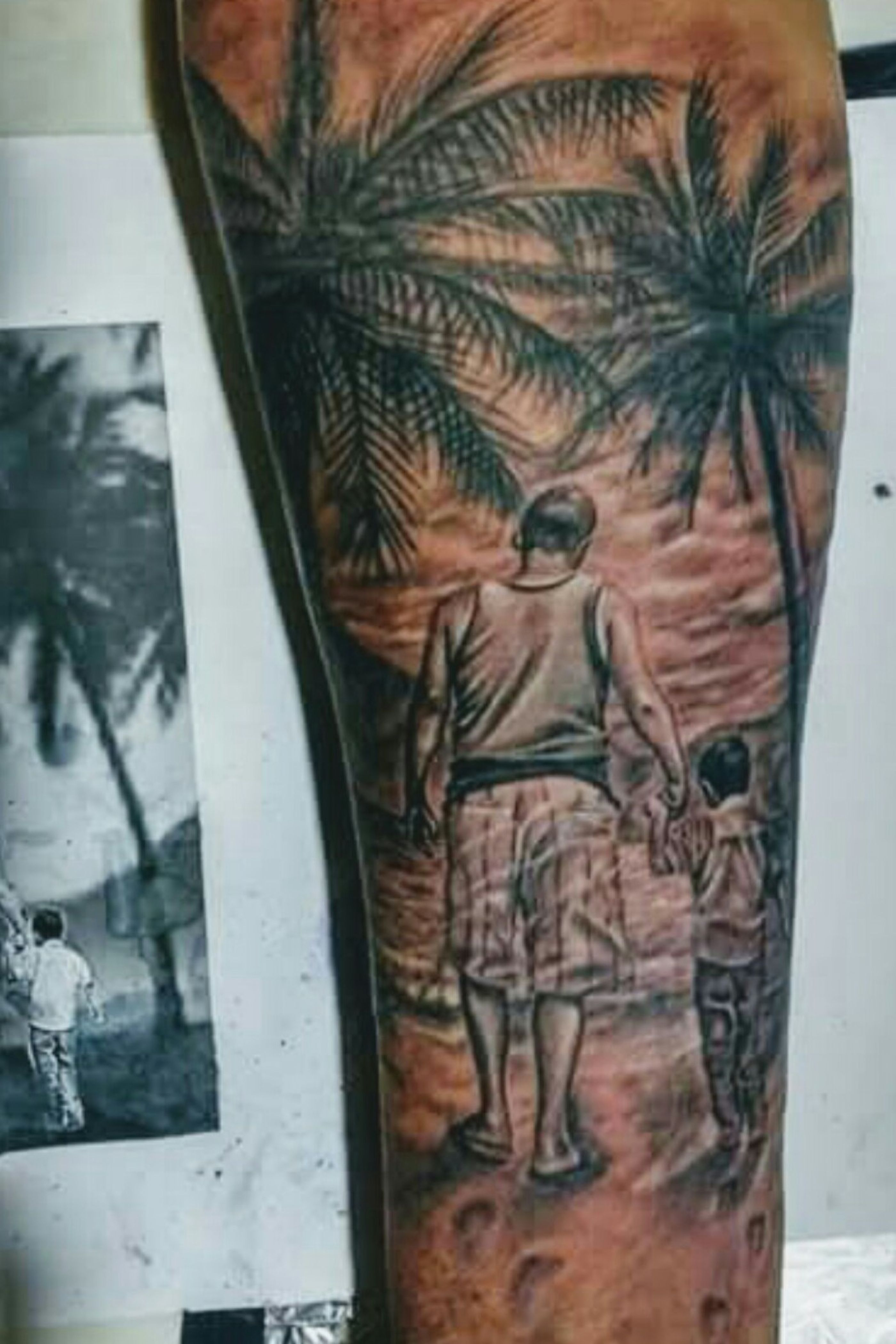 Father & Son at the Beach Tattoo!! #likefatherlikeson #dadtattoo #sontattoo #tattoosbykidd #beachtattoo #tattooart