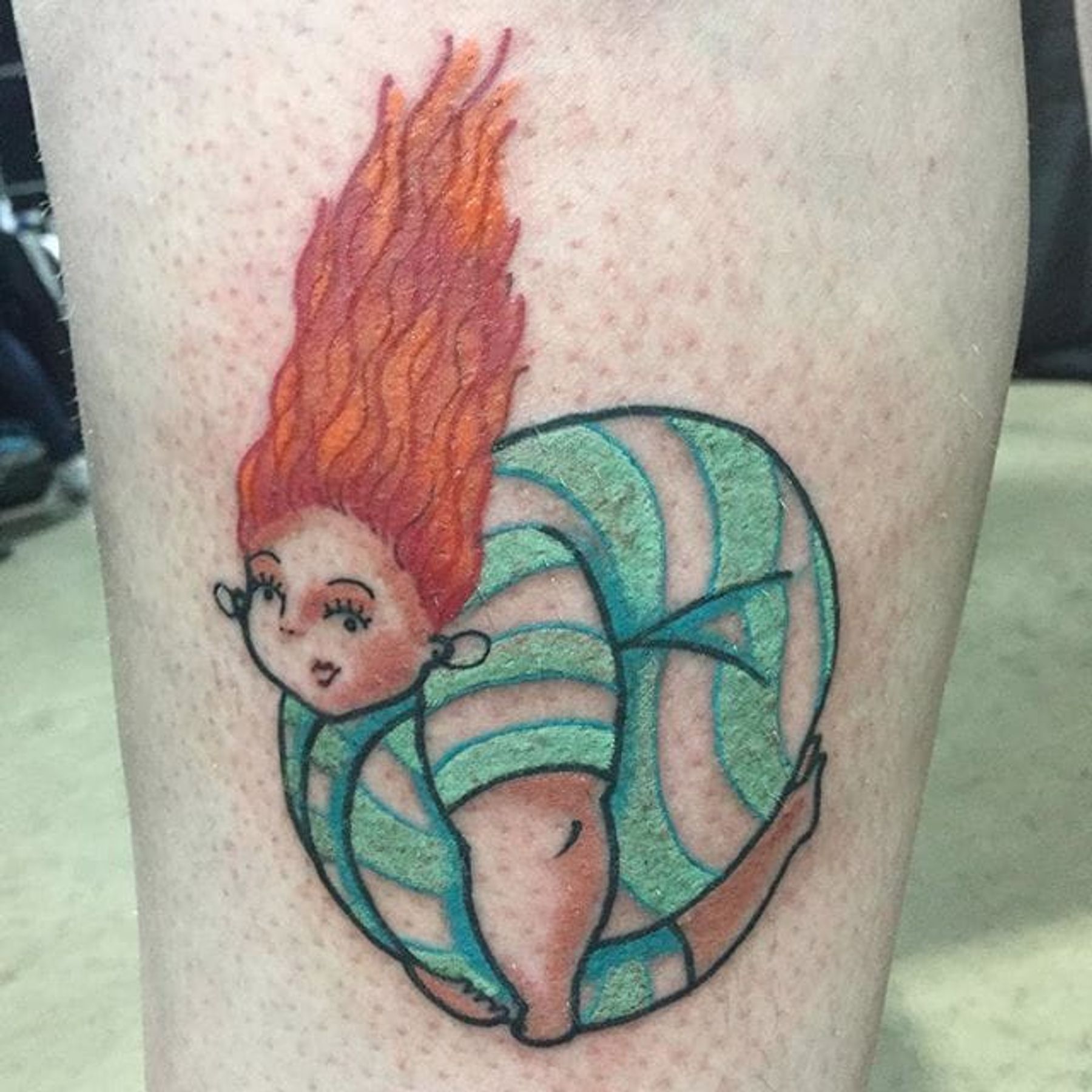 Cannonball big girl pin up tattoo by Hollie West. #HollieWest #pinup #plussize #bodylove #bodypositivity #pinuplady #biggirlpinup #ginger