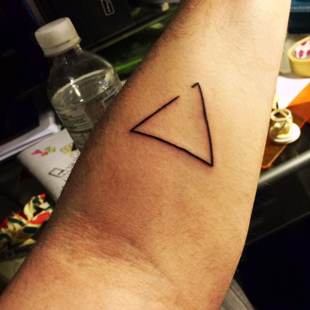 This was my first tattoo. It's an open delta and stands for open to change. As a delta is the standard symbol for change