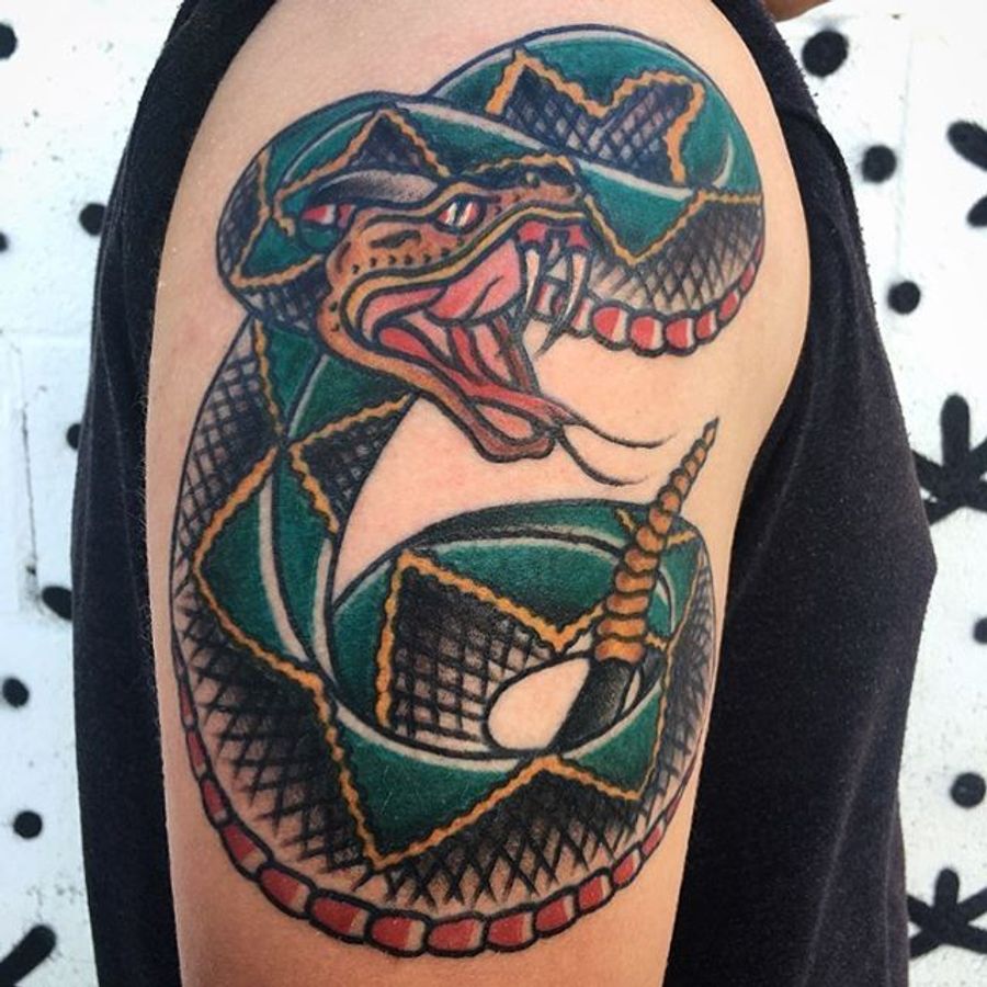 Rattlesnake Tattoo by @unomaser #rattlesnake #snake #traditional #unomaser