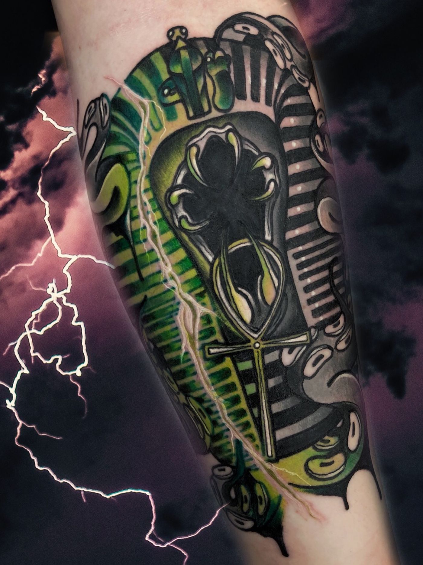 N Y A R L A T H O T E P 🌙 (Better Photo 😎) • • • “And it was then that Nyarlathotep came out of Egypt. Who he was, none could tell, but he was of the old native blood and looked like a Pharaoh. The fellahin knelt when they saw him, yet could not say why. He said he had risen up out of the blackness of twenty-seven centuries, and that he had heard messages from places not on this planet. Into the lands of civilization came Nyarlathotep, swarthy, slender, and sinister, always buying strange instruments of glass and metal and combining them into instruments yet stranger. He spoke much of the sciences – of electricity and psychology –and gave exhibitions of power.” “Don't fail to see Nyarlathotep if he comes to Providence. He is horrible — horrible beyond anything you can imagine — but wonderful. He haunts one for hours afterward. I am still shuddering at what he showed.” • • • • • • • • #redemptiontattoocare #redemptionbyafterlife #stencilstuff #razorbladepro @razorbladepro #eternalink #allegoryink @allegoryink #fusionink @fusion_ink #klostattoomachines @kloscollective #revolutioninkstudio @revolutioninkstudio @keithbmachineworks #keithbmachineworks #kbmwct #hushanesthetic @hushanesthetic #blackclaw @blackclaw #neontraditional @blackhopecurse #blackhopecurse #nyarlathotep #hplovecraft