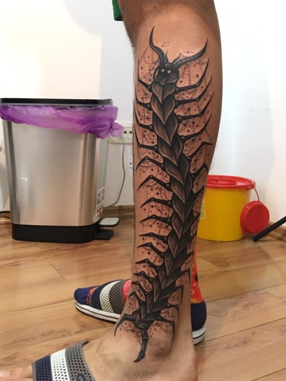 #blackandgrey #blackwork #neotraditional #traditional #dotwork #centipede #realism #spiderweb #horrortattoo #horror