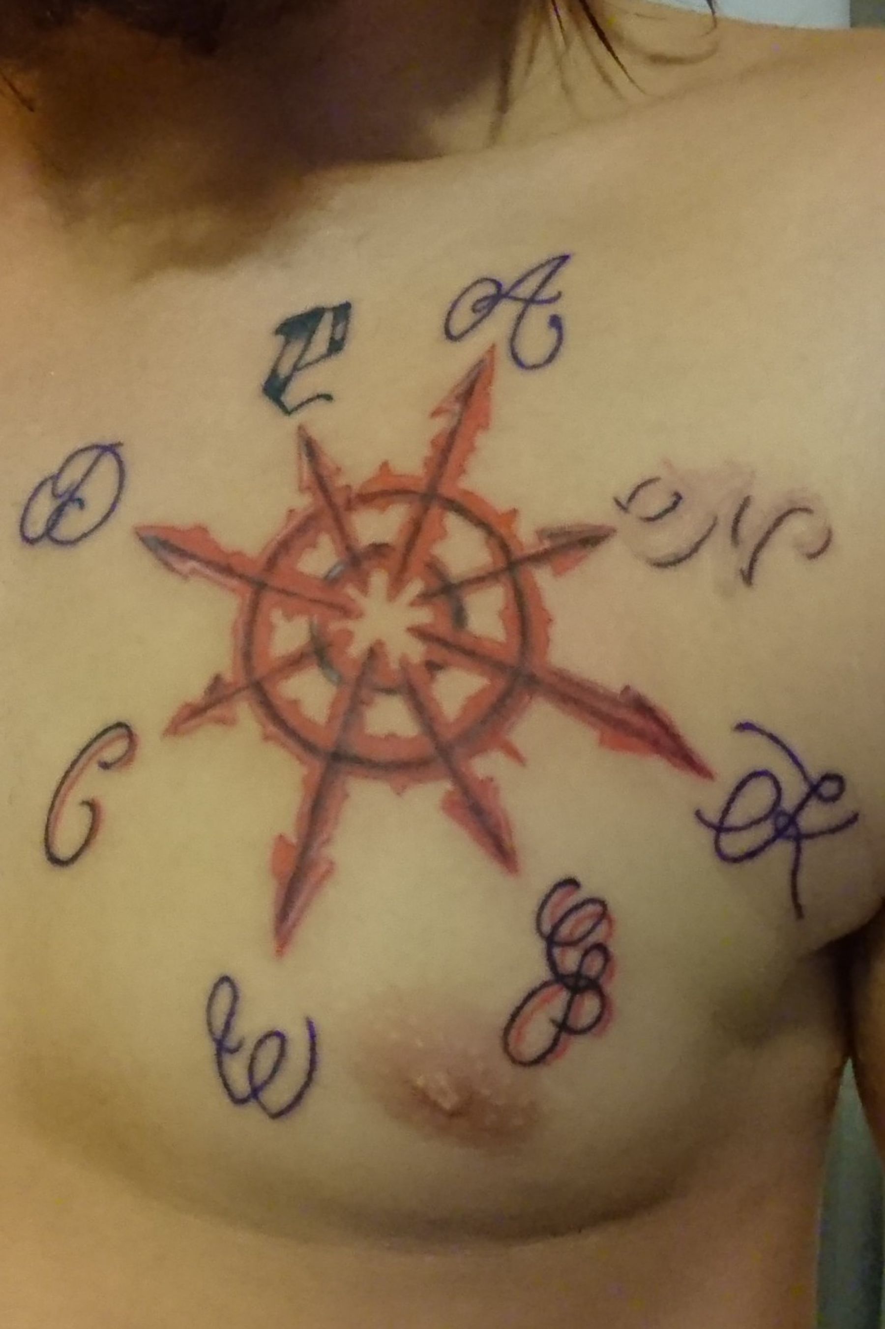 Tattoo poitrine gauche by Daz Tats, le Lamentin, Martinique 97200 #etoileduchaos #poitrine