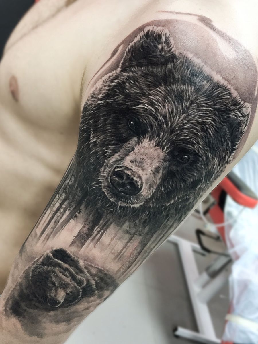 #bear #forrest #realism #realistic #blackandgrey #animal #wild #madmamont