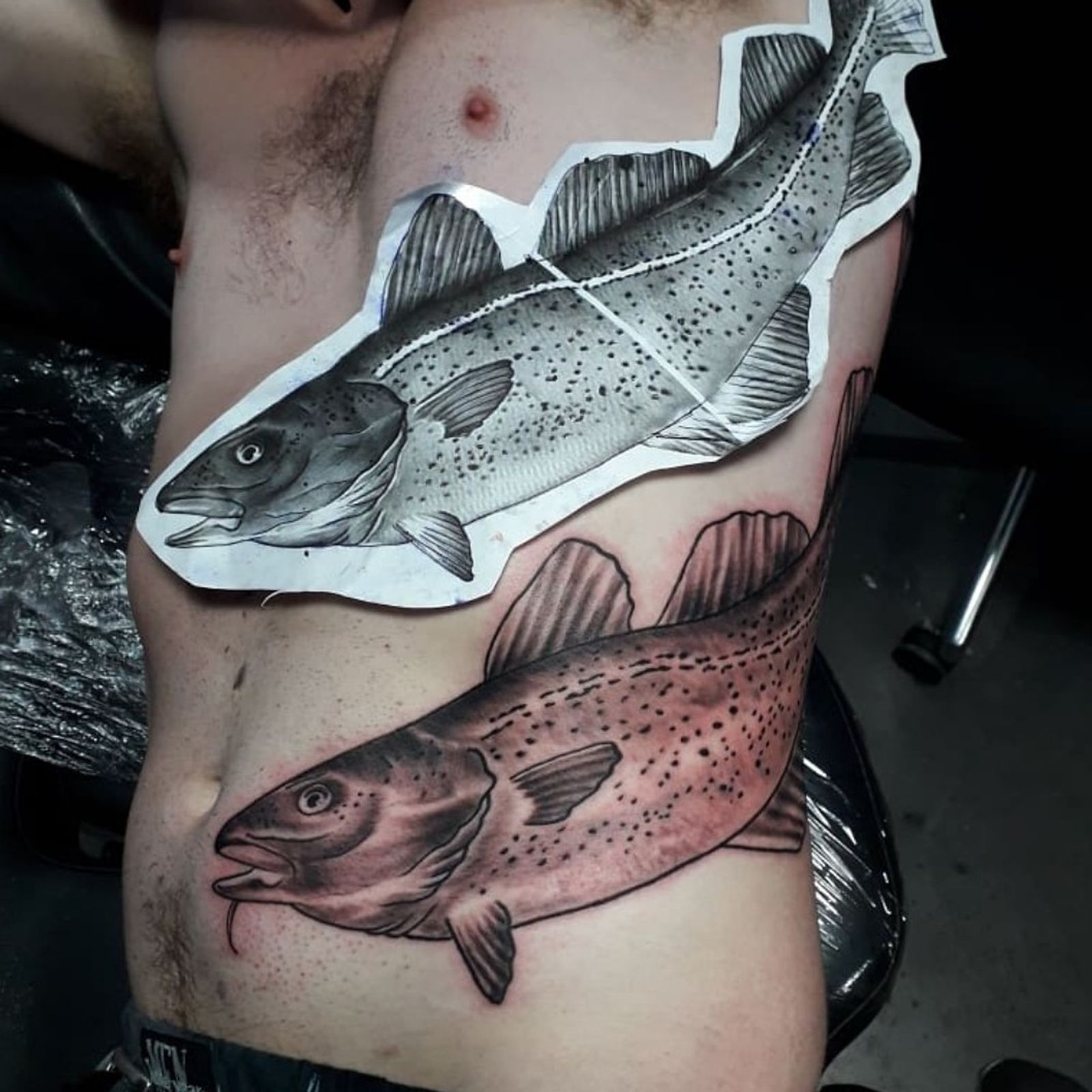 #fish #fishtattoo #cod #realism #ribtattoo #blackandgreytattoo #fishing #ribs #realistic #ink #kwadron