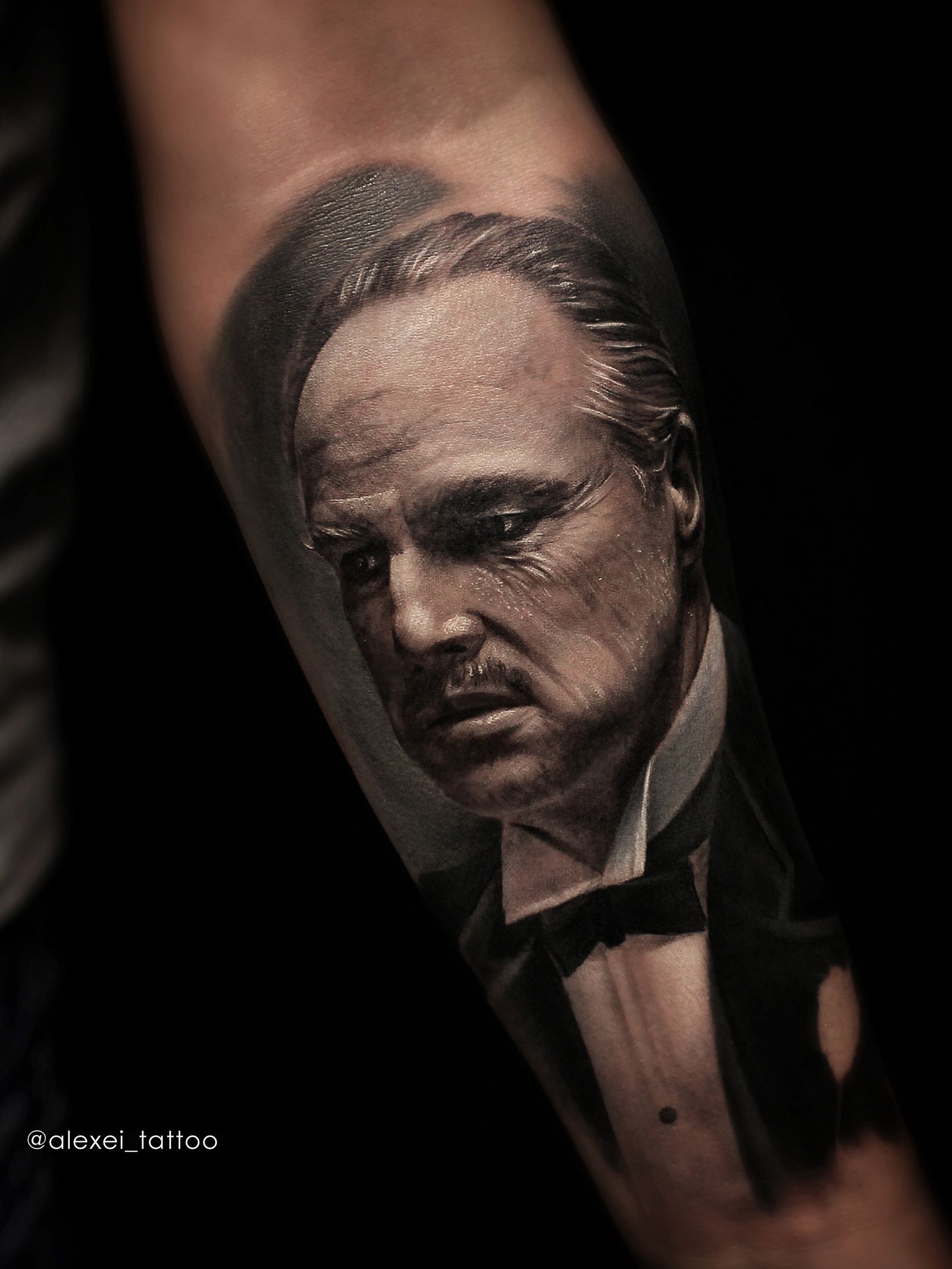 #tattoorealistic #doncorleone #Godfather #blacktattoo #tattooportrait #tattoorealism #tattooart #tattooinked #tattoos #alexeimikhailov
