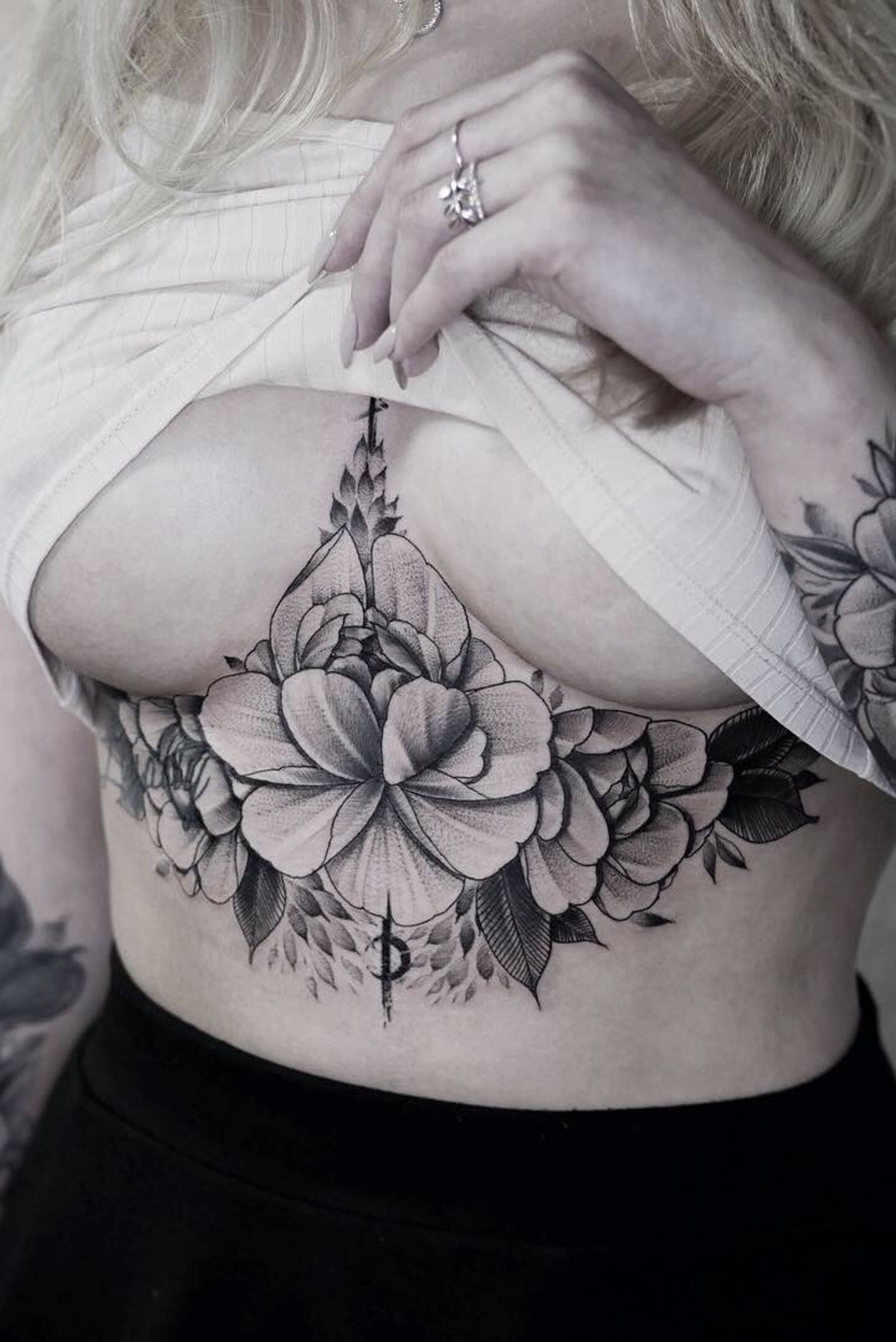 Flower blossom inside 🌸 #underboobs #flowertattoo #germany #ukraine #amsterdam #blacktattoo #tattooedgirl #graphictattoo
