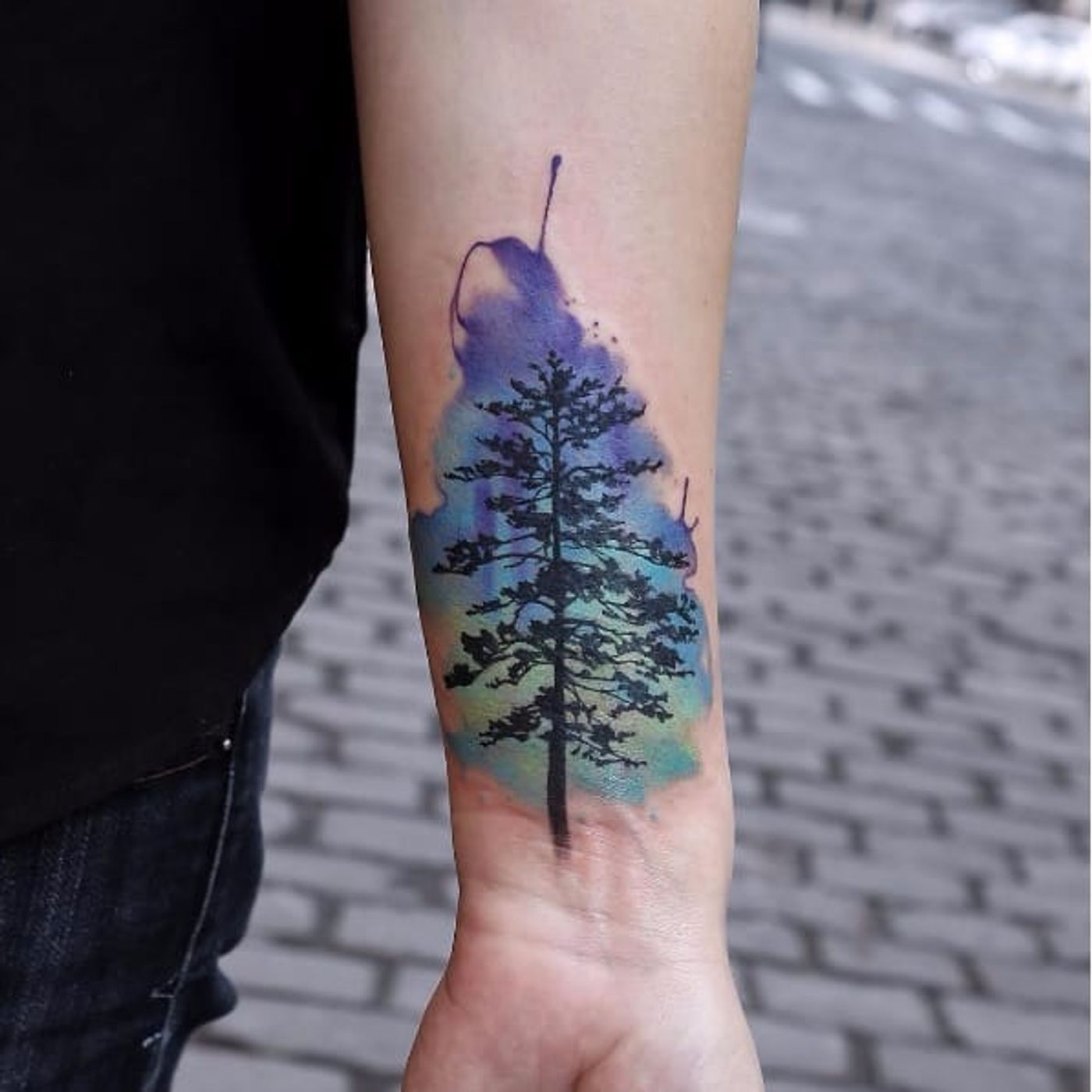 Pine tree tattoo by Joice Wang #JoiceWang #watercolor #graphic #nature #tree