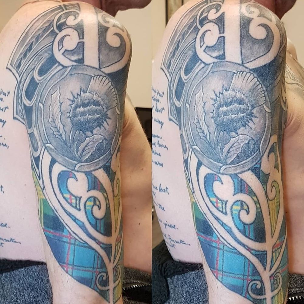 Got a healed shot of this tartan tattoo I did about a year ago! #tartan #tartantattoo #scottishblood #wonderlandtattoo #wonderlandkitchener #colortattoo @wonderlandtattoostudioskw www.wonderlandstudioskw.com