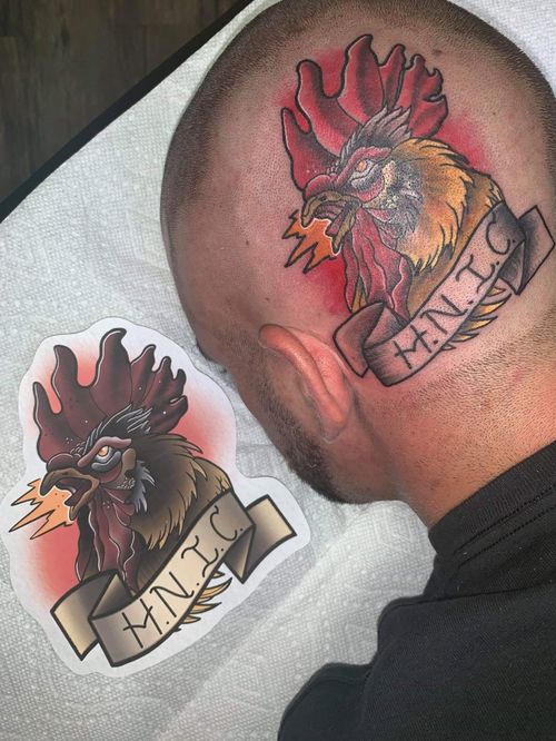 #roostertattoo #cockfight #hnic #headtattoo #neotraditionaltattoo #neotraditional #rooster