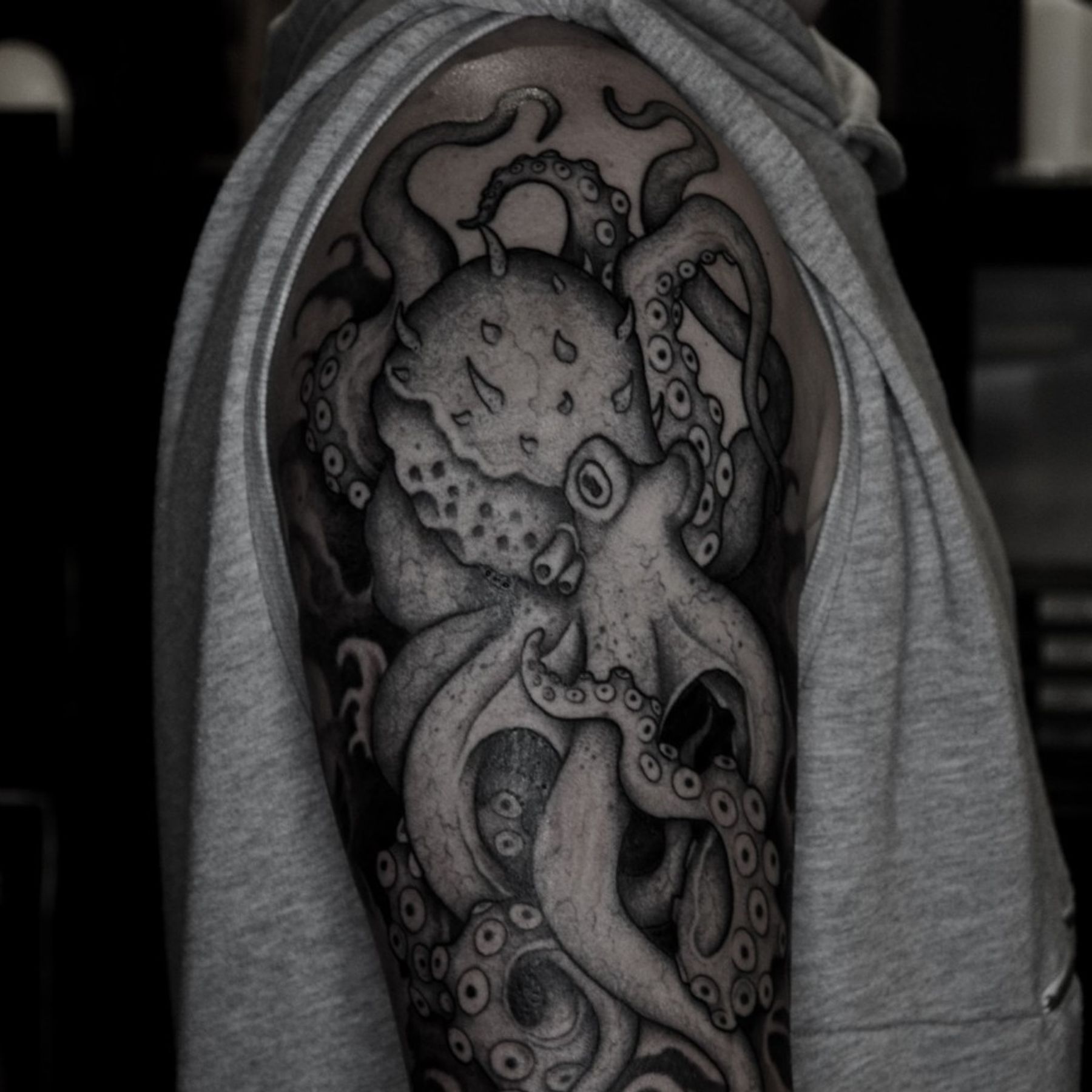Octopus #graphictattoo #dotwork #blackandgreytattoo #blackandgrey #blackwork