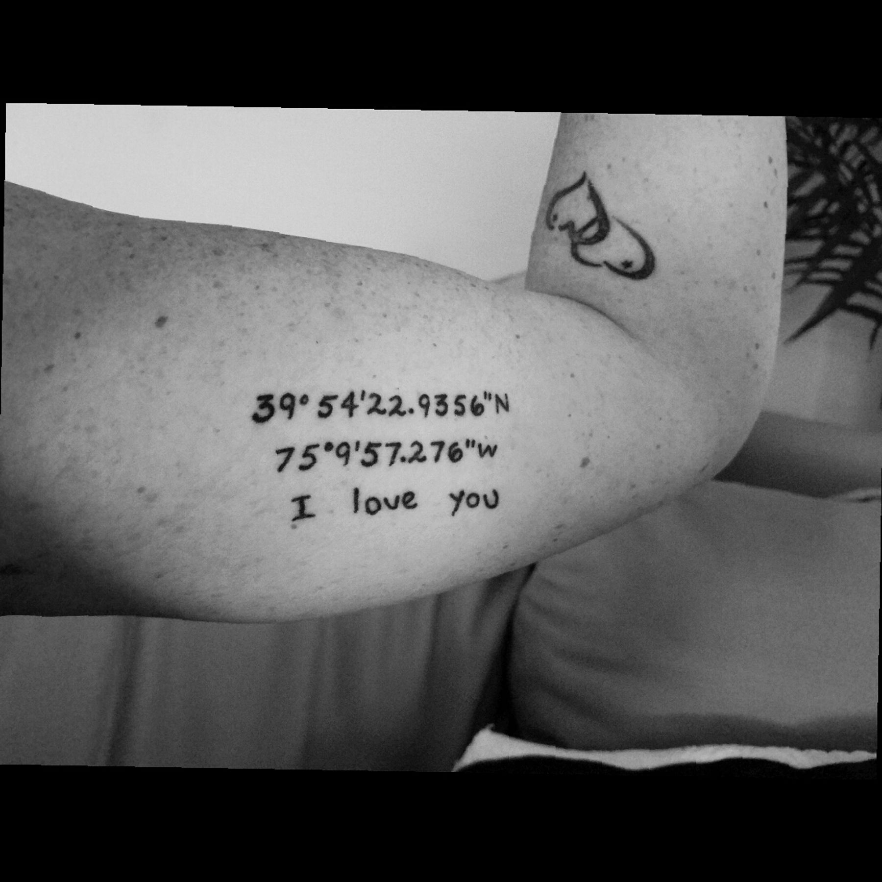 Coordinates to where I proposed to my girl, and I love you in her handwriting.