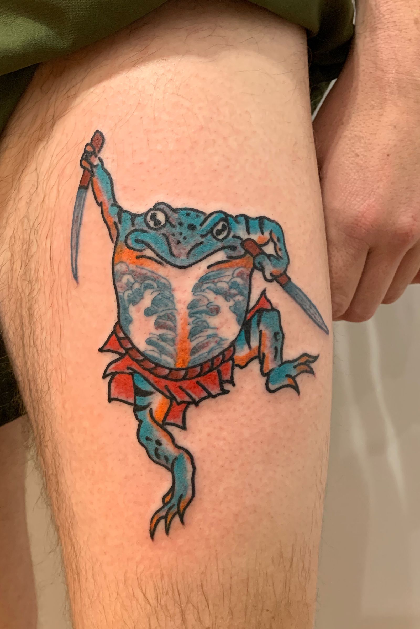 Japanese Sumo Frog Tattoo with Waves