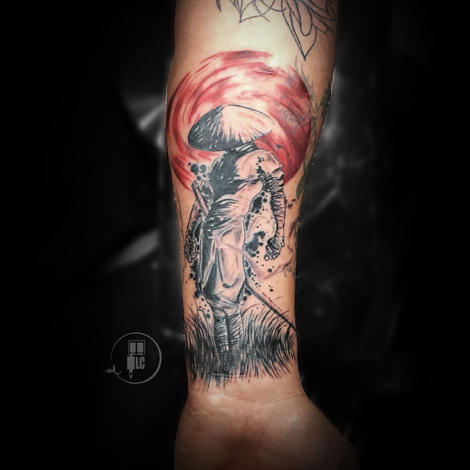 Solo Samurai #samuraitattoo #japanesetattoo #warriortattoo #soldier #killer #blackandgray #blackwork #redandblack #forearmtattoo #Samurai #Japanese #Asiantattoo