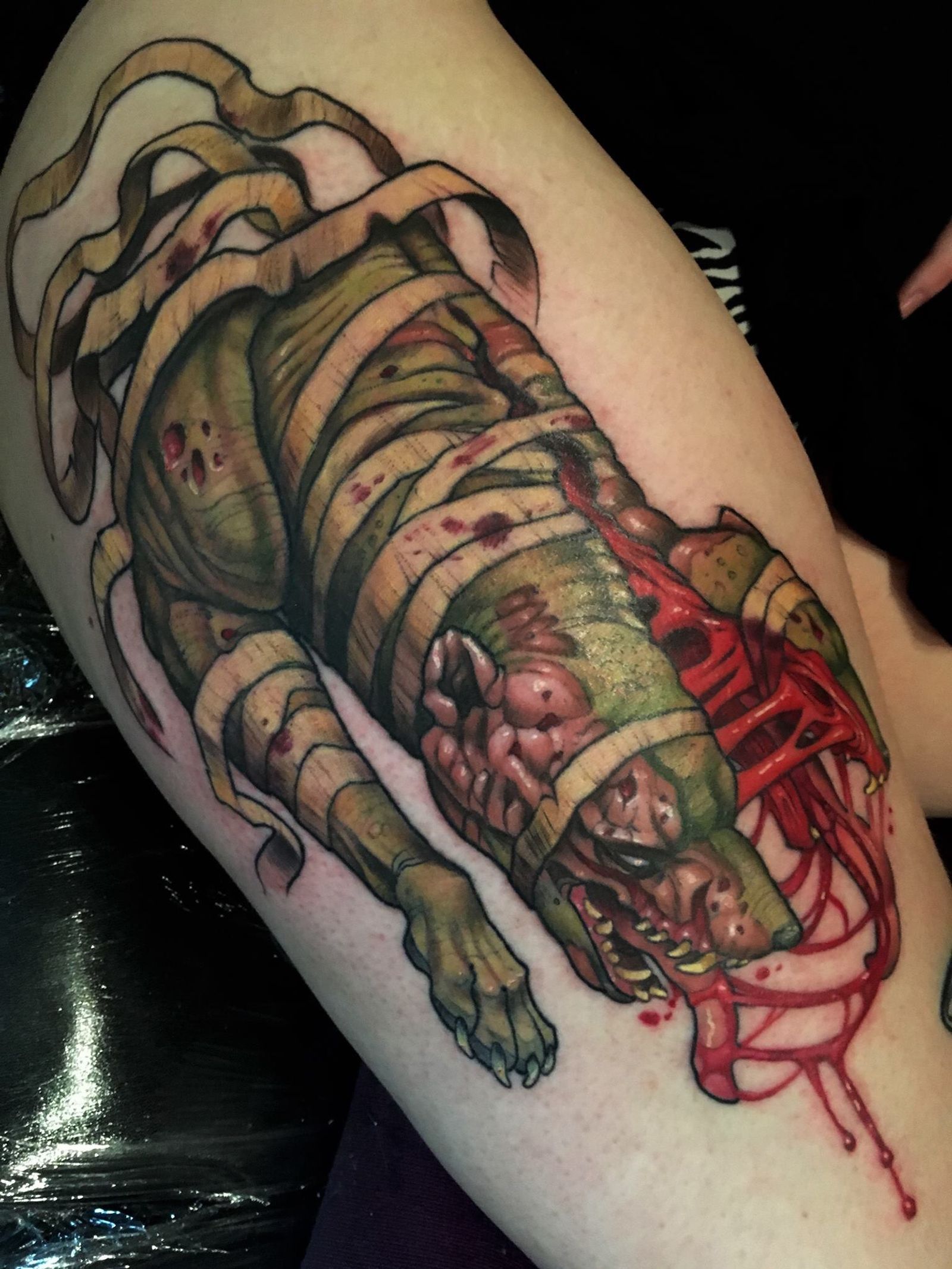 Double Head from Silent Hill on ig: @ talktomecute Thanks Cody. #silenthill #gamerink #videogame #videogametattoos #color #zombie #gore #dark #doublehead #cerberus #neotraditional #illustrative #Wisconsin #milwaukee #tattooartist #chicago #MKE #fanart #fantasy #Tattoodo #horror #tattooart #thightattoo #silent #hill #macabre